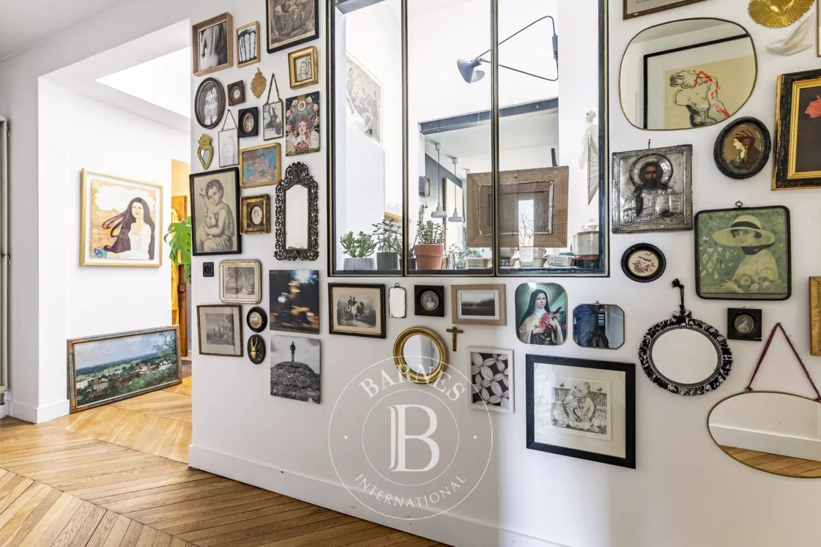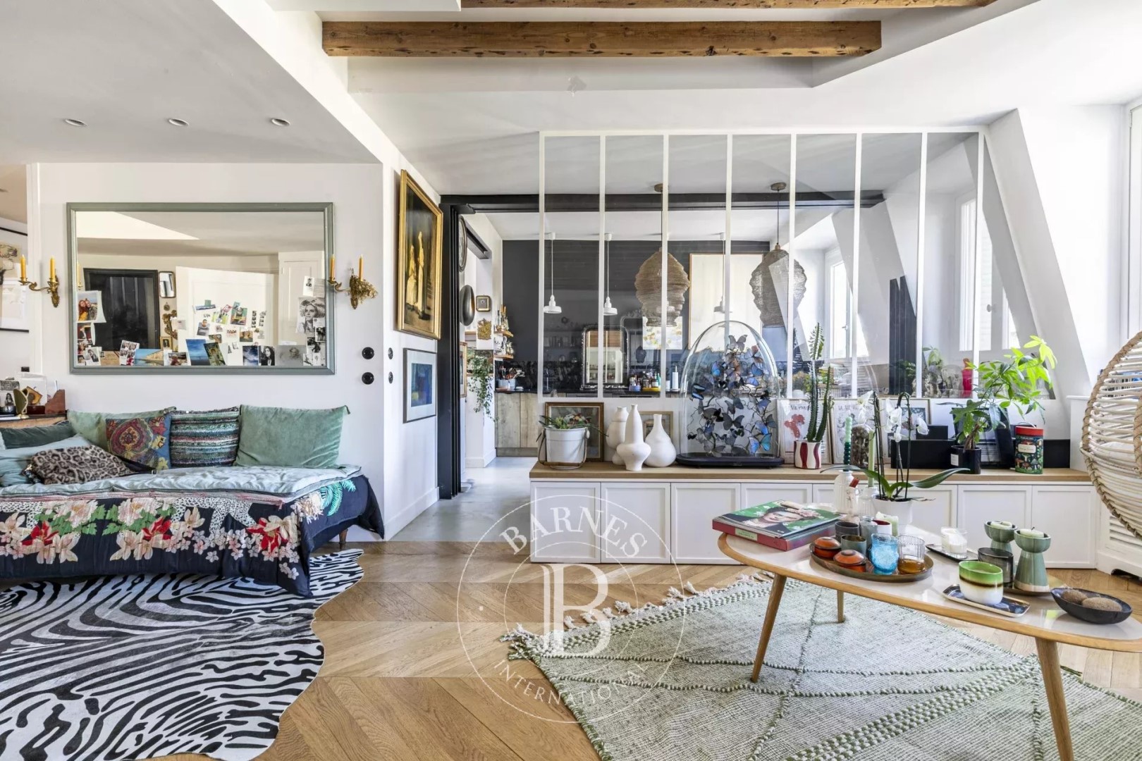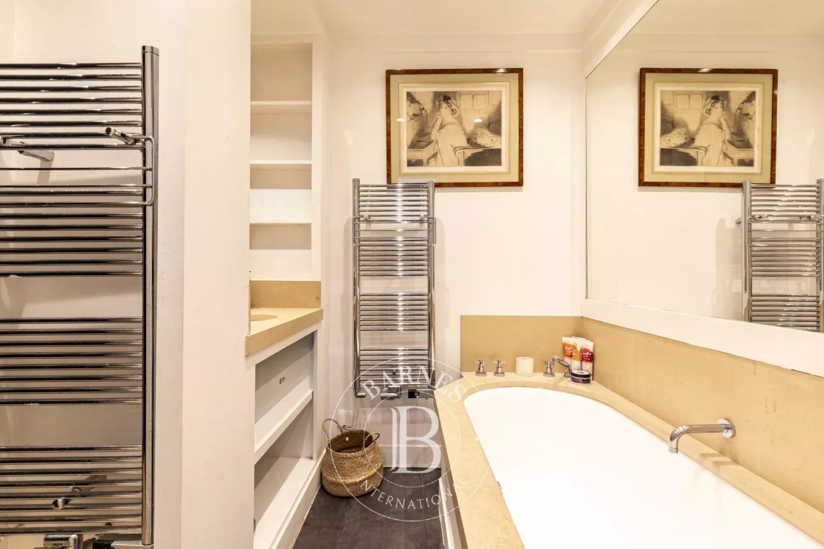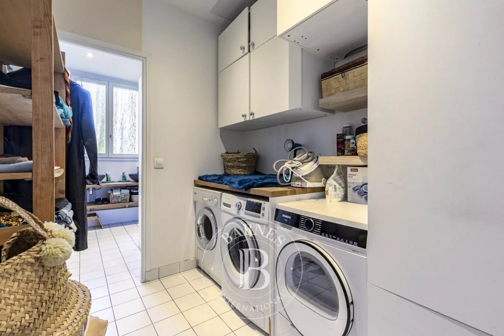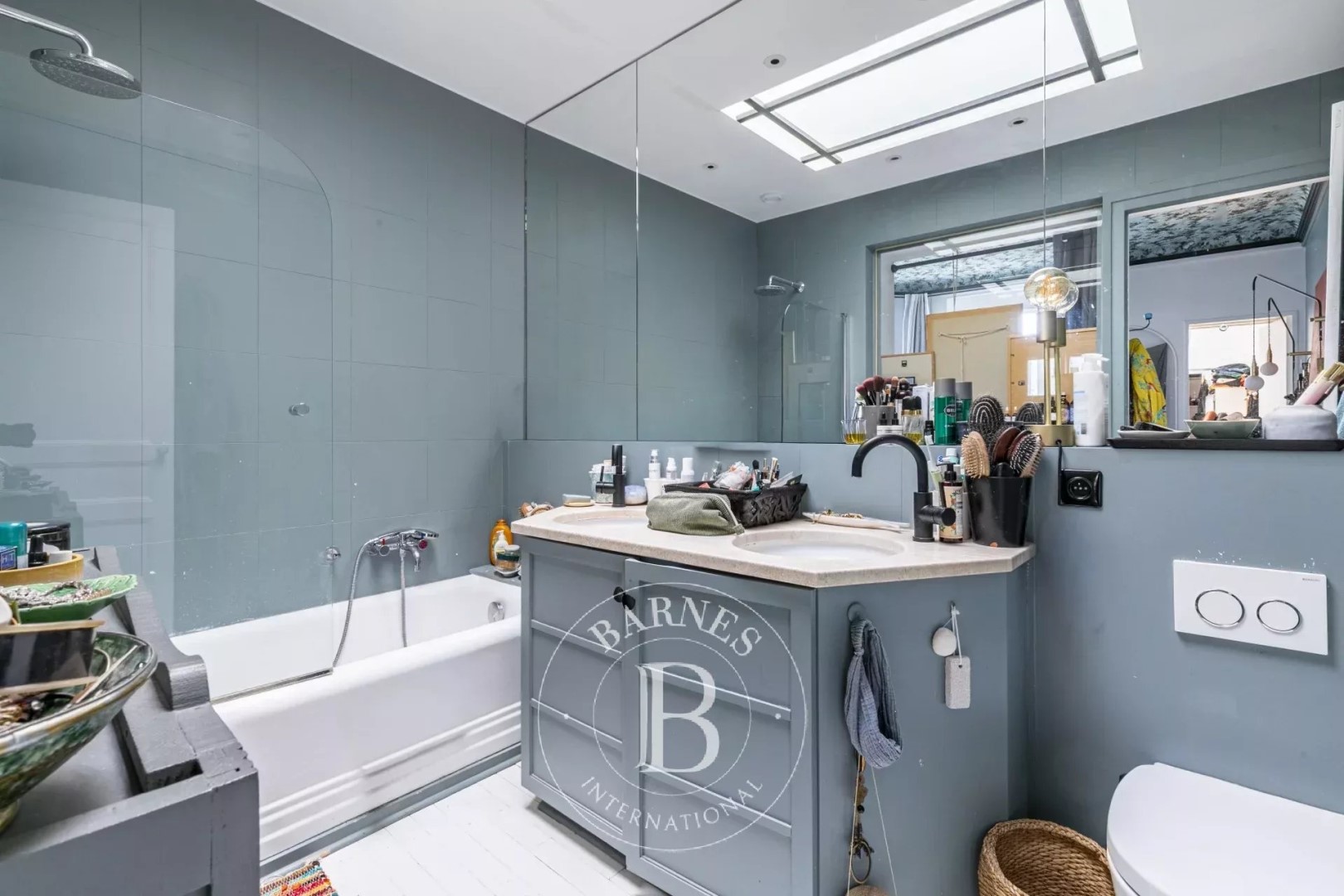 Family apartment, fully renovated, offering 210 sqm of living space, located on the 2nd and top floor of a 19th-century private mansion. Designed like a house and ideally situated just steps from the Jardin du Ranelagh, this dual-aspect East/West apartment features a double living room with fireplace, a semi-open eat-in kitchen, a spacious office with a glass partition overlooking the garden, three bedrooms with a bathroom and a shower room, as well as a master suite with dressing room and en-suite bathroom. A laundry room completes the property. You will also discover a fifth bedroom nestled in the turret, which provides access to a sunny 14 sqm rooftop terrace. This unique property, full of charm, is sure to capture your heart. Property subject to co-ownership regulations.