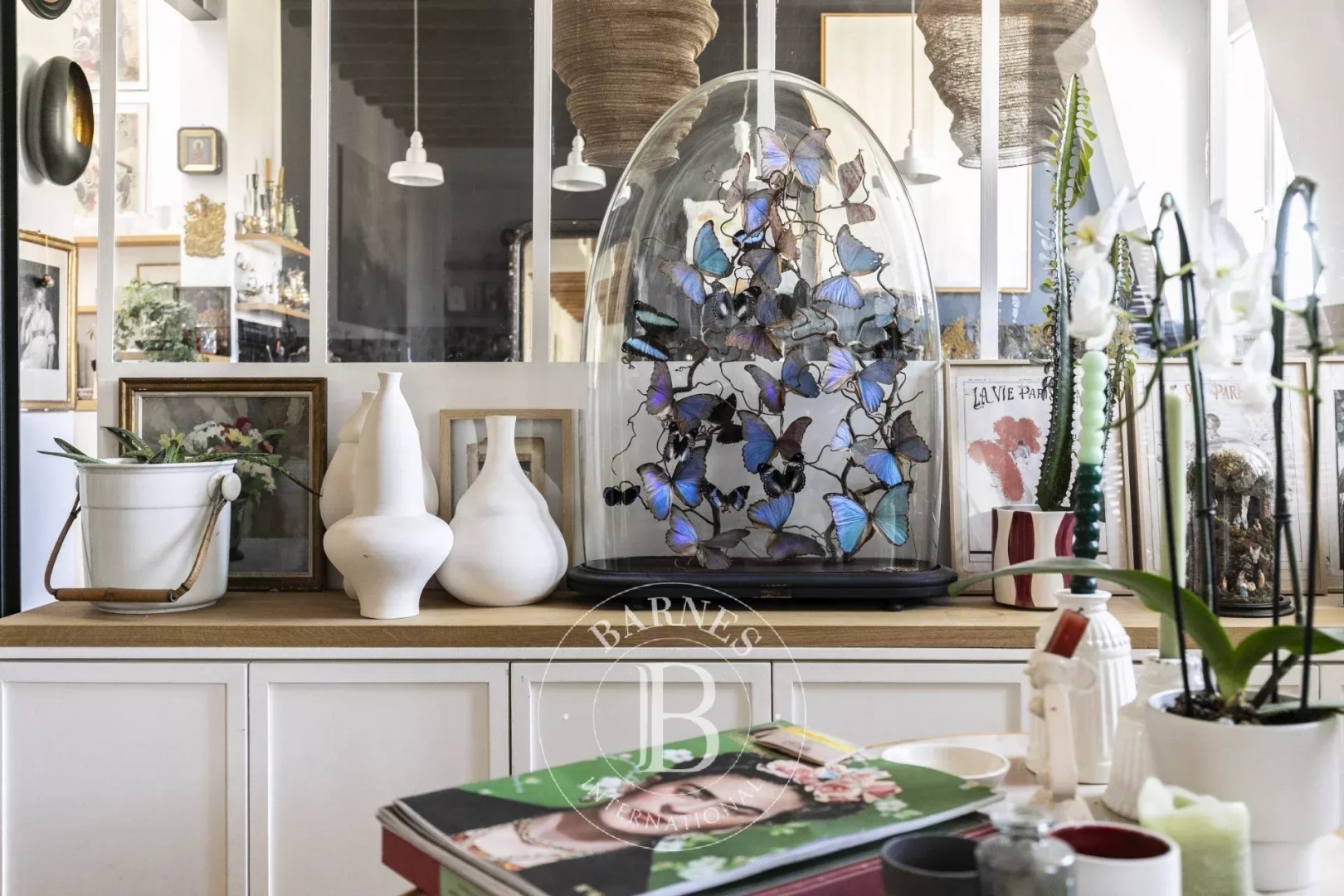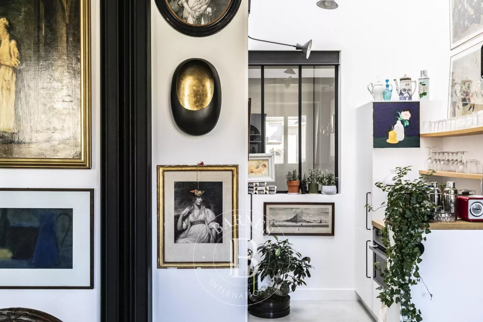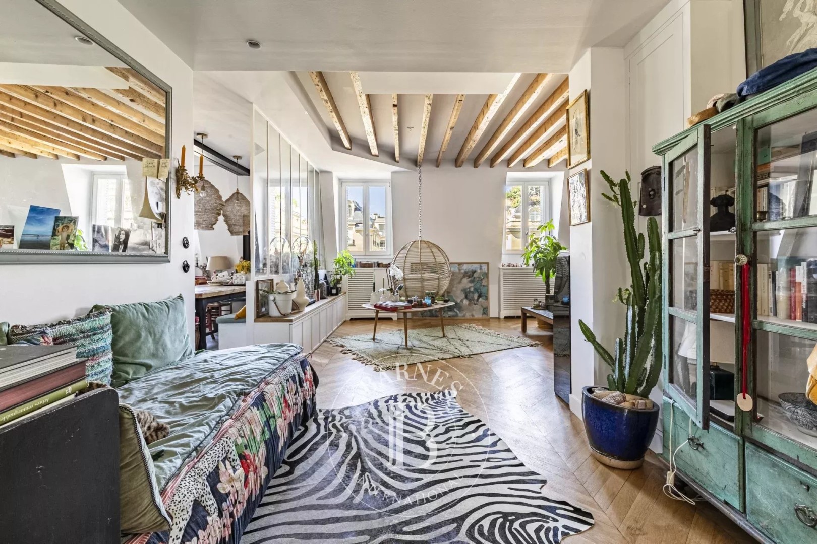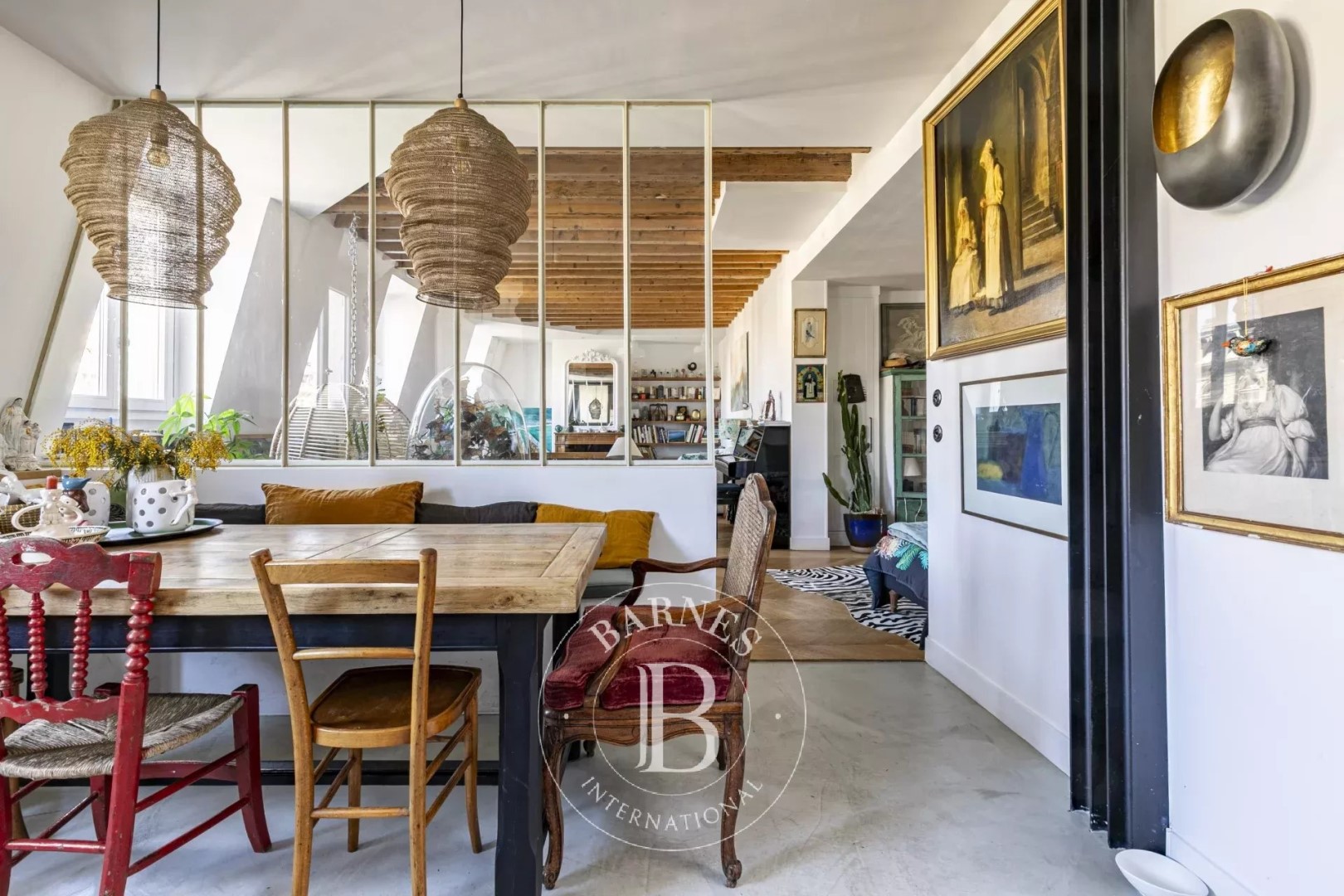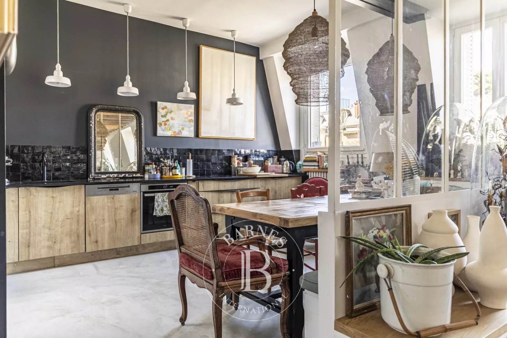 Family apartment, fully renovated, offering 210 sqm of living space, located on the 2nd and top floor of a 19th-century private mansion. Designed like a house and ideally situated just steps from the Jardin du Ranelagh, this dual-aspect East/West apartment features a double living room with fireplace, a semi-open eat-in kitchen, a spacious office with a glass partition overlooking the garden, three bedrooms with a bathroom and a shower room, as well as a master suite with dressing room and en-suite bathroom. A laundry room completes the property. You will also discover a fifth bedroom nestled in the turret, which provides access to a sunny 14 sqm rooftop terrace. This unique property, full of charm, is sure to capture your heart. Property subject to co-ownership regulations.