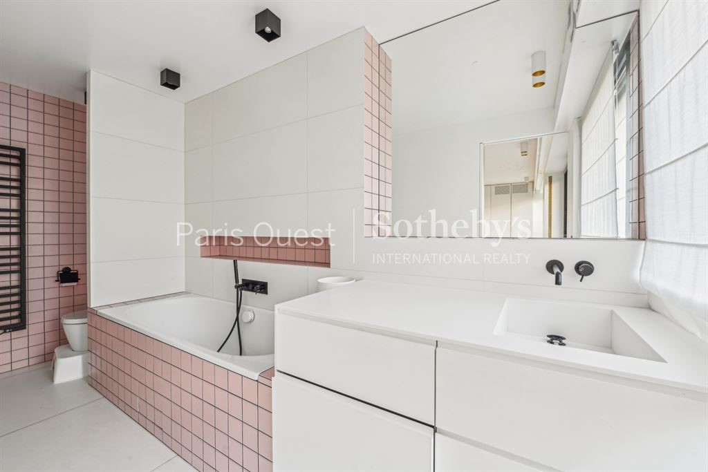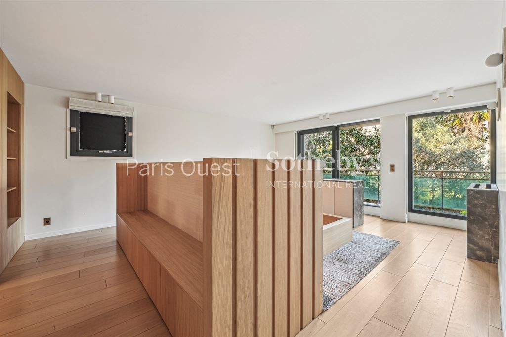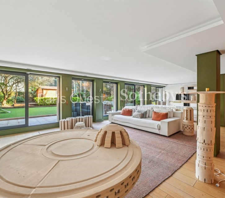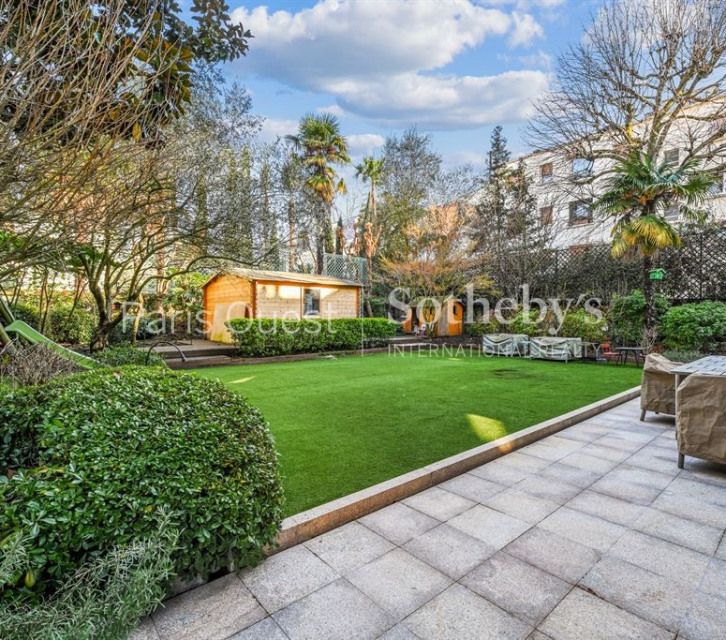 Neuilly-sur-Seine - Garden level, like a house, in the heart of the Saint James district, this 7-room apartment is spread over two levels. Completely renovated with quality materials and high-end features, it comprises: An entrance hall opening onto a 75 m² double reception room opening onto a 300 m² garden, and a kitchen/diner. On the upper floor, the sleeping area features a master suite with a dressing room and bathroom, three other bedrooms sharing two bathrooms, and plenty of storage space. Two cellars and a parking space complete this exceptional property.