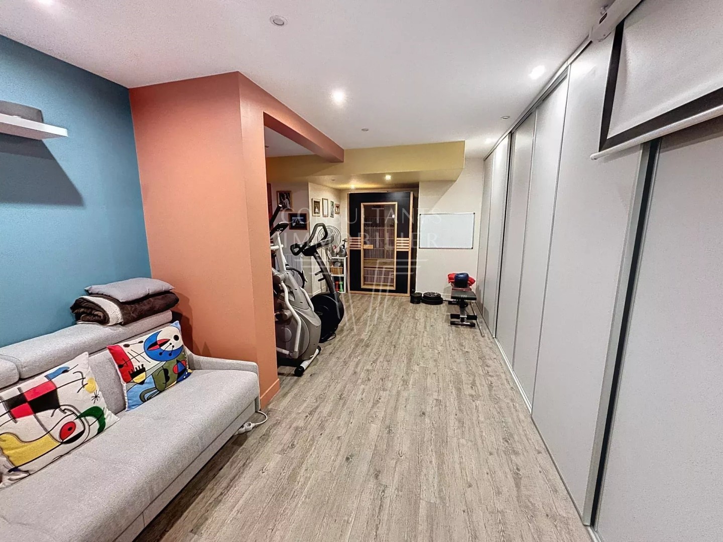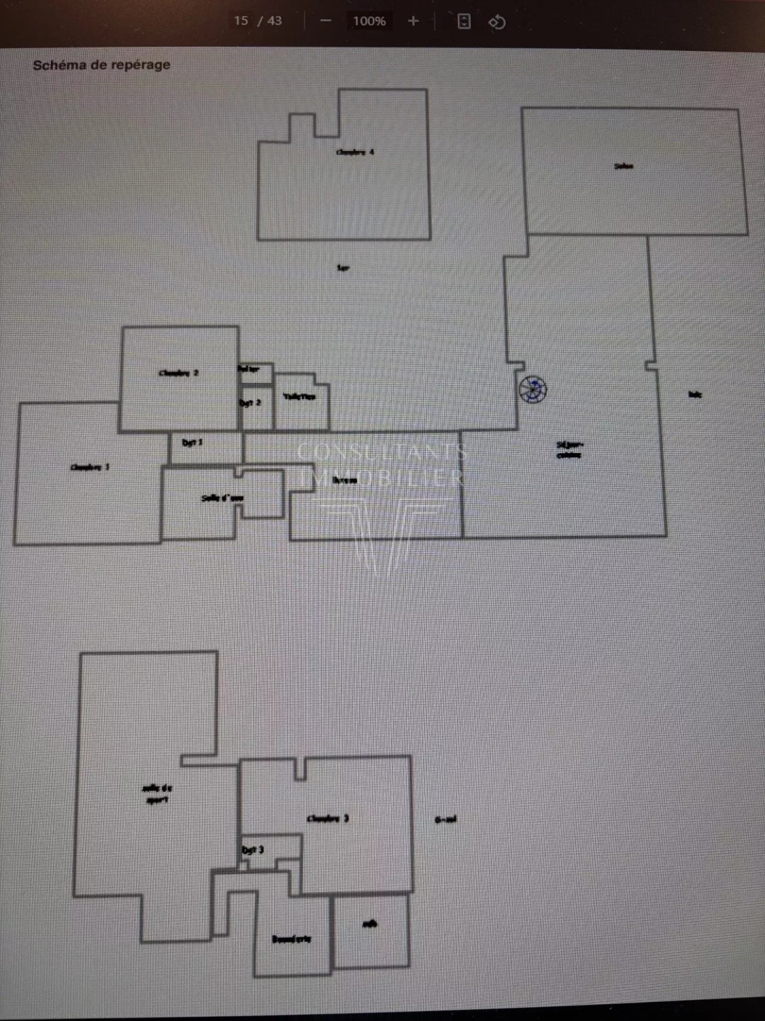 With south exposure this apartment188.8 m² (about 2030 ft²), built in 1980, in a building of 5 floors contains 6 rooms including 4 bedrooms, 1 bathroom and 3 toilets. It is equipped with a living room, with a Kitchen/dining room, with a balcony and with a parking lot. It's located on the 1st floor with a lift. Heating : Collective gaz radiator. Others : intercom, digicode, guard. Fees : 3.733.