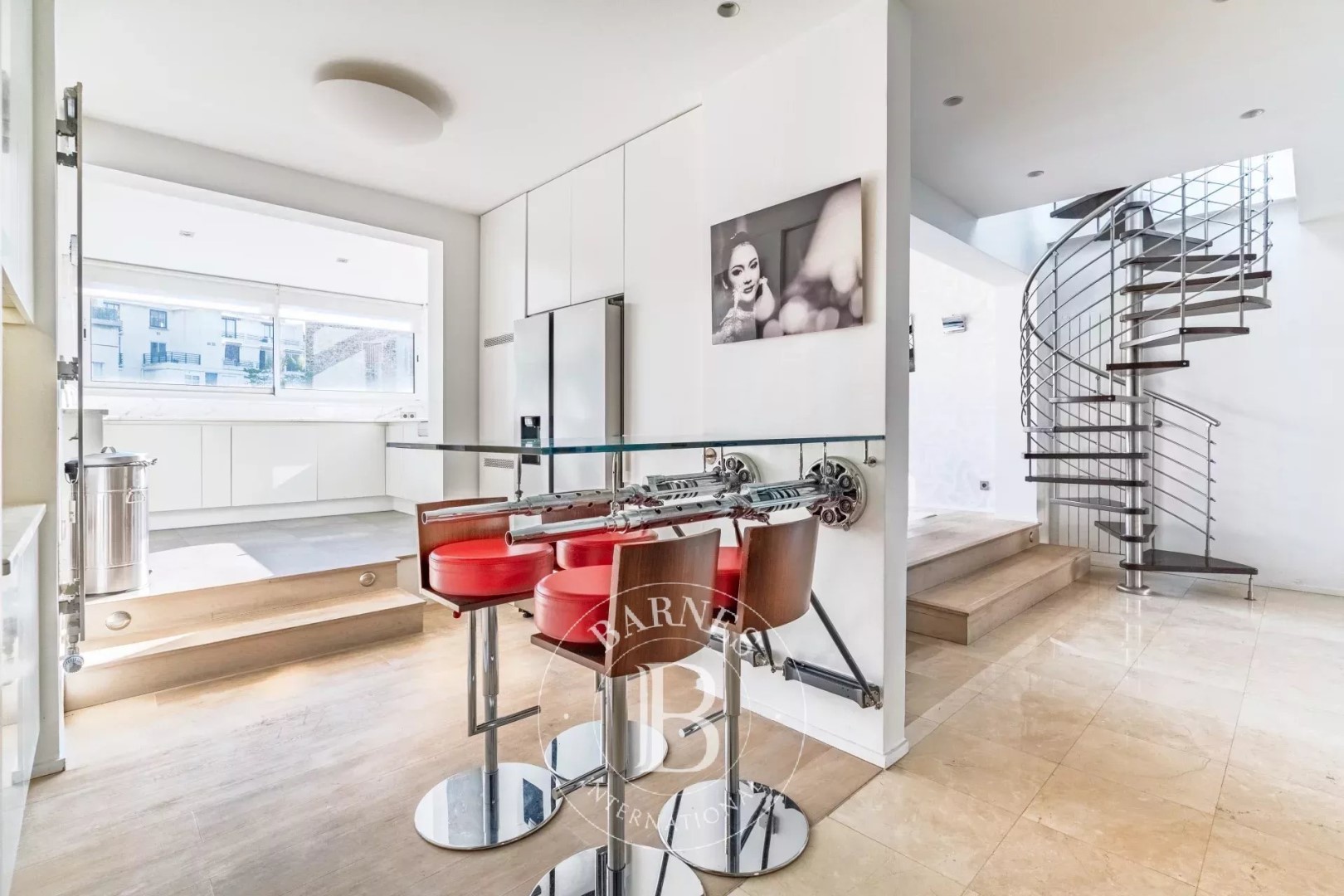 Exclusive – Exceptional Penthouse with Terraces near Place Victor Hugo Just steps from Place Victor Hugo, on the top two floors of a prestigious and secure building, this East/West-facing penthouse of 126.70 m² (Carrez law) impresses with its natural light and its outstanding outdoor spaces, featuring two terraces of 91.45 m² and 26.33 m². On the 6th floor, an elegant entrance opens onto a spacious living room extending onto a 26 m² terrace, ideal for entertaining. A high-end open kitchen, a bright dining area, and a master suite with bathroom and separate toilets complete this level. A second bedroom with shower room and balcony, a guest WC add to the comfort. On the 7th floor, a third bedroom with shower room enjoys direct access to a spectacular 91 m² sun-drenched terrace, offering unobstructed views and a rare lifestyle in the heart of the 16th arrondissement. A private box parking space within the building and a cellar complete this exclusive property. Contact Vanessa Landau : +33 6 80 11 99 80