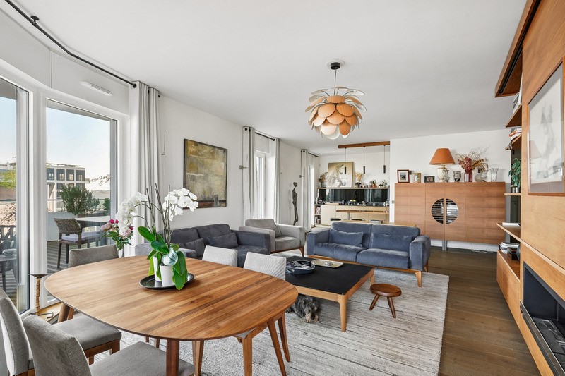 Engel & Völkers presents for sale an exceptional apartment of 167.30 m² (Carrez law), with a 245 m² suspended open-sky terrace, offering a breathtaking panoramic view of the Sacré-Cœur and the rooftops of Paris. <BR>Located on the 9th floor of the UNIC building, completed in 2019 and designed by Chinese architect Ma Yansong, it stands in the heart of the Batignolles eco-district, highly sought after by families for its pleasant living environment combining green spaces, schools, as well as shops and transport links.<BR>This high-end building with original lines, with a live-in caretaker, is a discreet condominium.<BR><BR>This elegant family apartment comprises an entrance hall, a living/dining room, and a semi-open, fully fitted and equipped kitchen, all bathed in light and opening onto a tree-lined terrace.<BR>Remarkable volumes and a 2.90 m ceiling height give this property an exceptional living space.<BR><BR>The sleeping area offers a master suite with its bathroom, a walk-in closet, separate toilets and an office, providing absolute comfort and complete privacy;<BR>it is completed by two other bedrooms each with its own shower room, and a highly functional laundry room with storage.<BR>Its perfectly balanced layout, high-end features and secure setting make it a rare property, meeting the expectations of a demanding clientele seeking a prestigious and timeless Parisian art of living.<BR><BR>A large cellar and two parking spaces, one with an electric charging station, complete this property.<BR><BR>EPC: C (76 kWh/m²/year).<BR>Greenhouse gas emissions: C (12 kg CO2/m²/year).<BR>Estimated annual energy costs for the home: between euros990 and euros1,380 per year.<BR>Property subject to condominium status.<BR>Condominium lots: 273<BR>Average annual charges: euros10,500<BR>Ongoing proceedings: yes<BR><BR>Transaction fees incl. VAT payable by the seller.<BR><BR>Information on the risks to which this property is exposed is available on the Géorisques website: www.georisques.gouv.fr.<BR>The Batignolles district, located in Paris's 17th arrondissement, is today one of the most pleasant and sought-after areas in the northwest of the capital. It is known for its village-like atmosphere, green spaces, and lively neighborhood life.<BR>Mstislav-Rostropovitch Street was created in the 2010s as part of the Clichy-Batignolles urban development project, and the buildings mainly date from around 2017. These are therefore modern constructions.<BR>The district is well served and connected to the rest of Paris thanks to:<BR>· Paris Métro Line 13<BR>· Paris Métro Line 14<BR>· Trains from Pont Cardinet Station<BR>· The nearby T3b tram.<BR><BR>These services make it possible to reach central Paris quickly, in particular Saint-Lazare Station, as well as the La Défense business district.