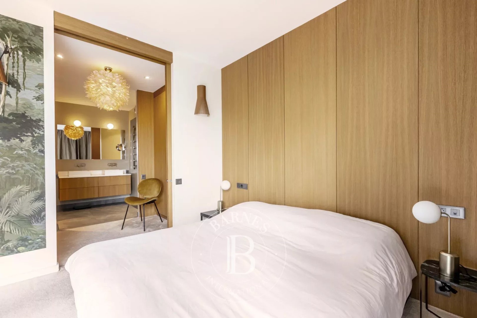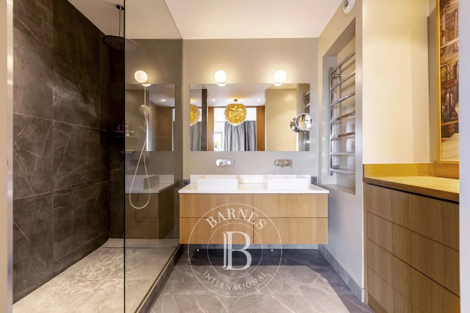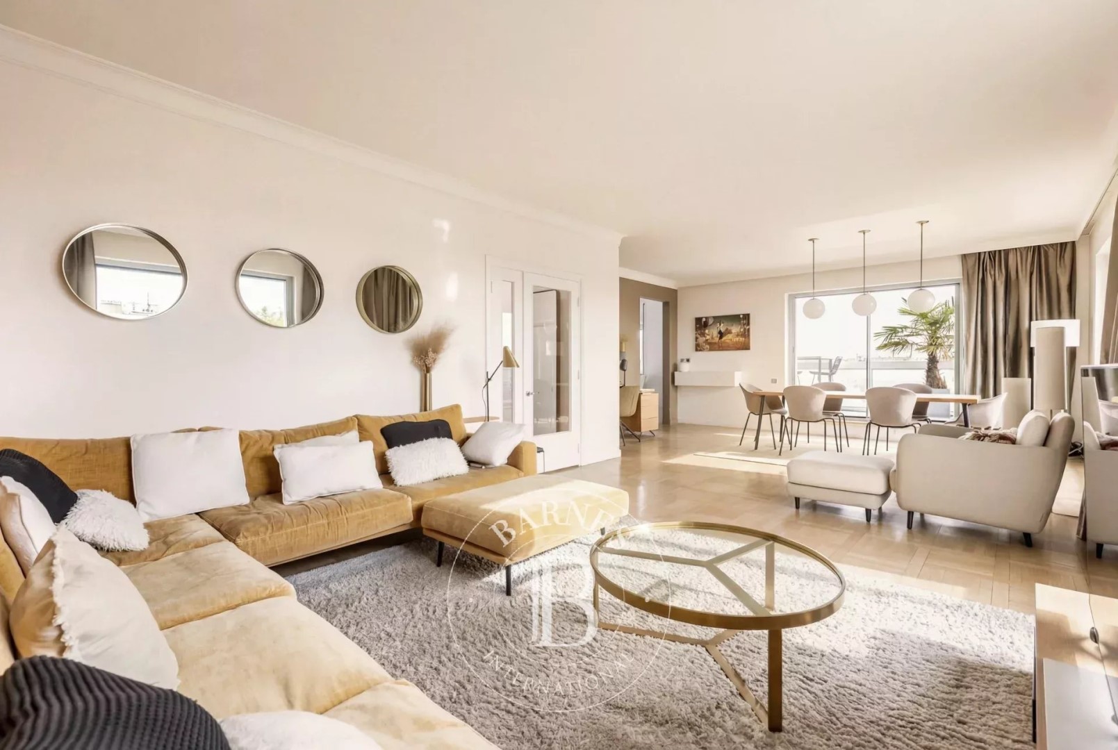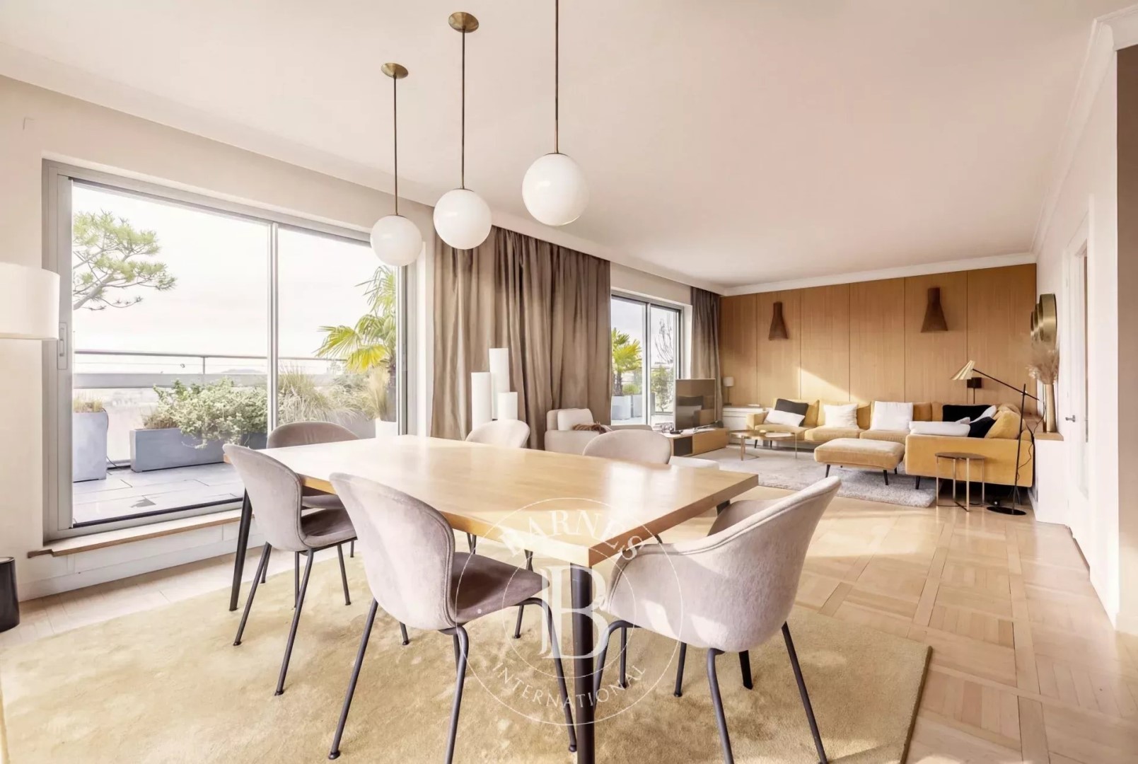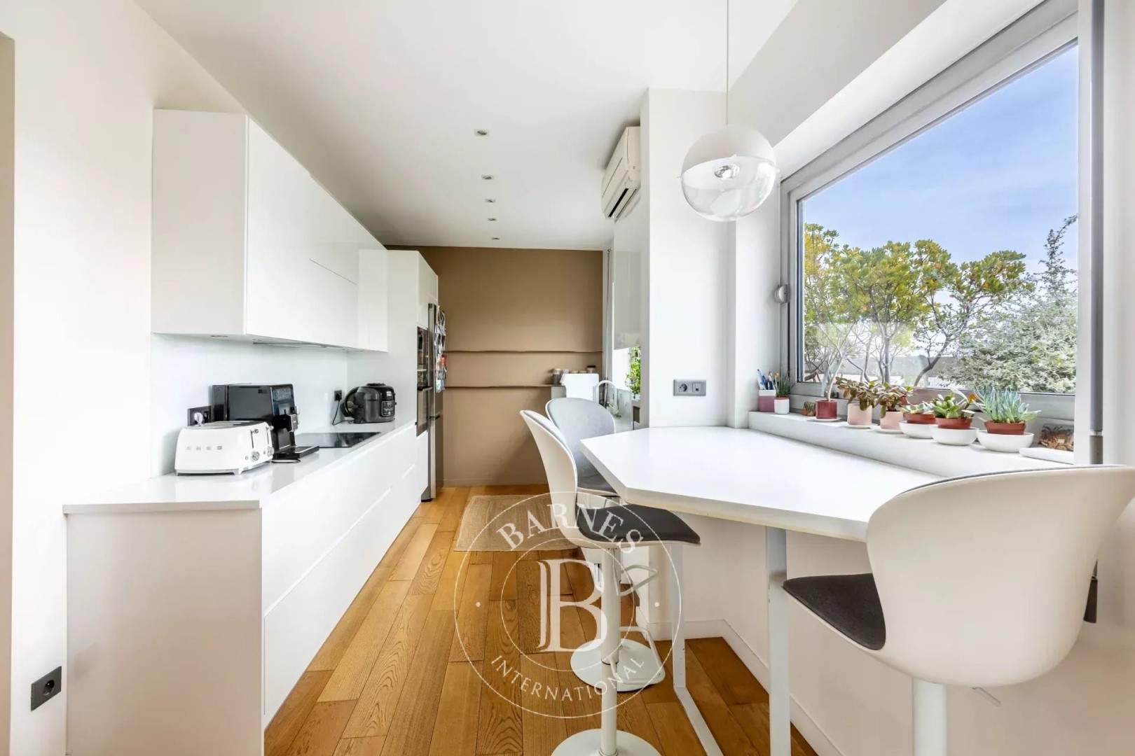 Paris 17th arrondissement - Pereire Ampère - “Penthouse” apartment with ground-level terrace and panoramic views - 2 bedrooms and a study. This 5-room “Penthouse” apartment, with a “Carrez” floor area of 124.66 m², is located on the 8th floor (top floor), with an elevator serving up to the 7th floor. It primarily comprises an entryway, a living-dining room, a fully equipped open-concept kitchen, a laundry room with a separate toilet, a master suite with a walk-in closet and an en-suite shower room, a second bedroom with an adjoining office space and an en-suite shower room, and a second separate toilet. All rooms open onto a 123 m² ground-level terrace with an exceptional panoramic view of Paris and its landmarks, notably the Eiffel Tower and Sacré-Cœur. The apartment also includes a storage unit and, as an option, a large parking space in the building. Translated with DeepL.com (free version)