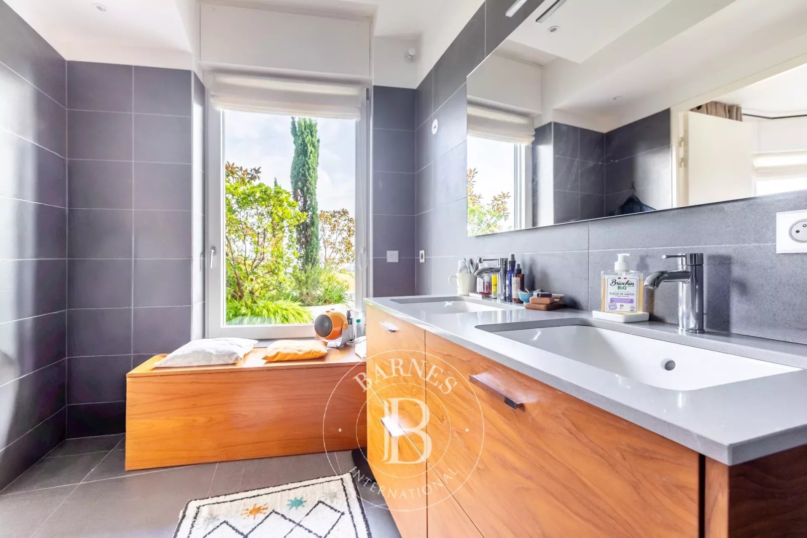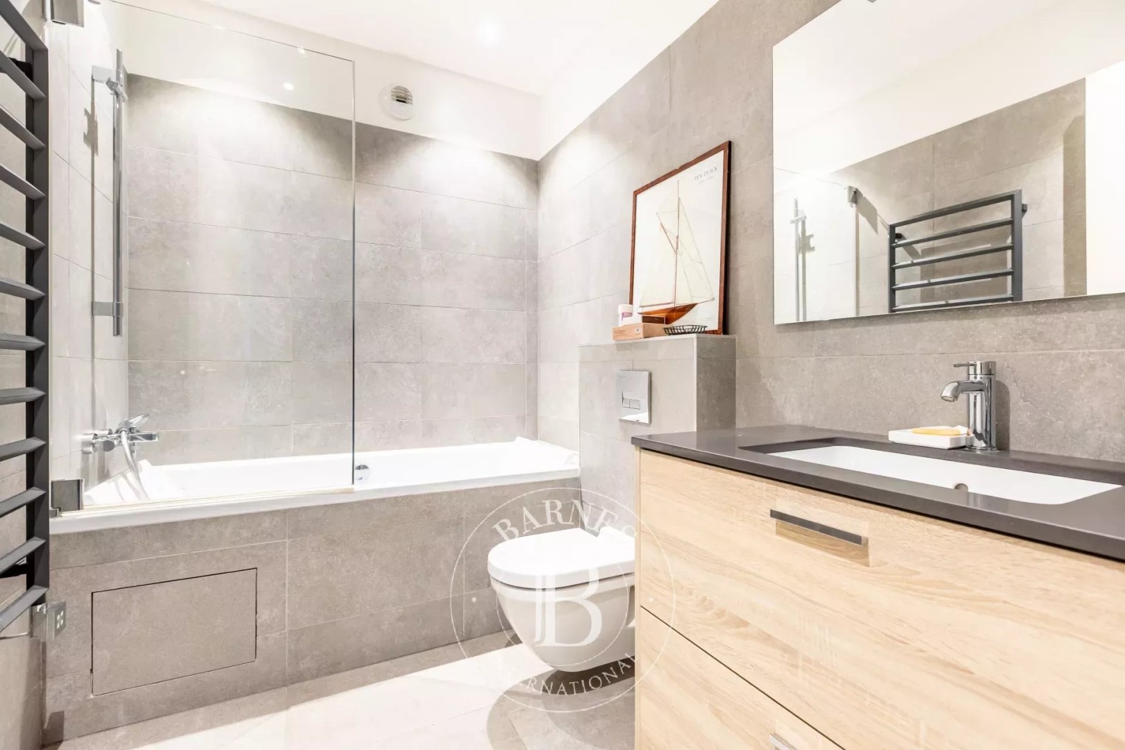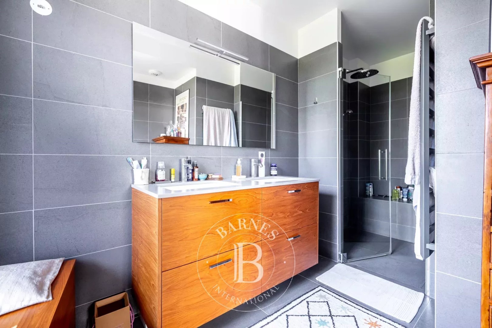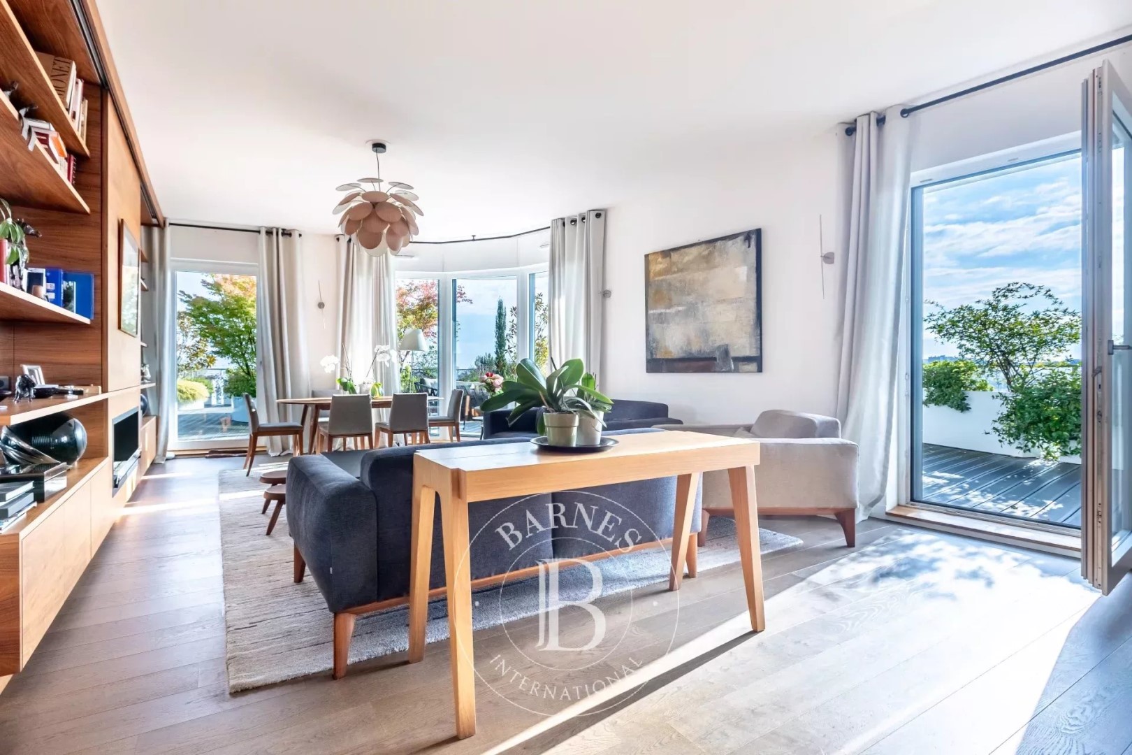 Paris 17th arrondissement - Martin Luther King Garden - Terrace - Panoramic view - 4 bedrooms Ideally located in the heart of the new Batignolles district, on the 9th floor of a contemporary luxury building with elevator, this exceptional apartment offers breathtaking views of Paris and its monuments. It comprises an entrance hall with wardrobe, a large living/dining room extending onto a spectacular green terrace of approximately 245 sq. ft., a veritable oasis of greenery suspended above the city. The fully equipped kitchen opens onto the living room. The sleeping area comprises a master suite with dressing room and shower room, a study, and two bedrooms, each with its own bathroom or shower room. There is also a laundry room. All rooms open onto the terrace. Two parking spaces and a cellar complete this rare property.