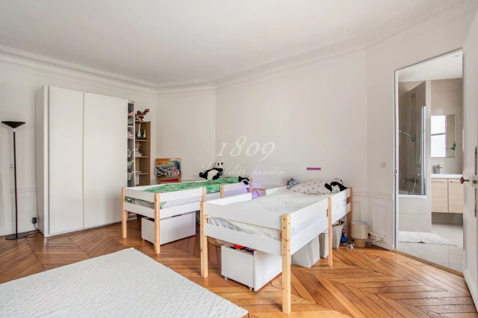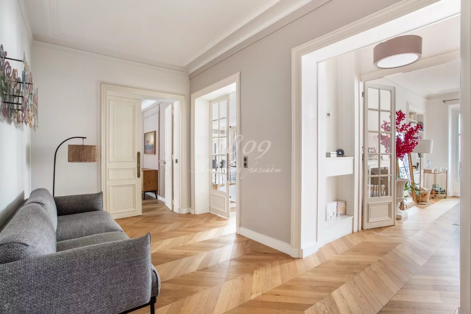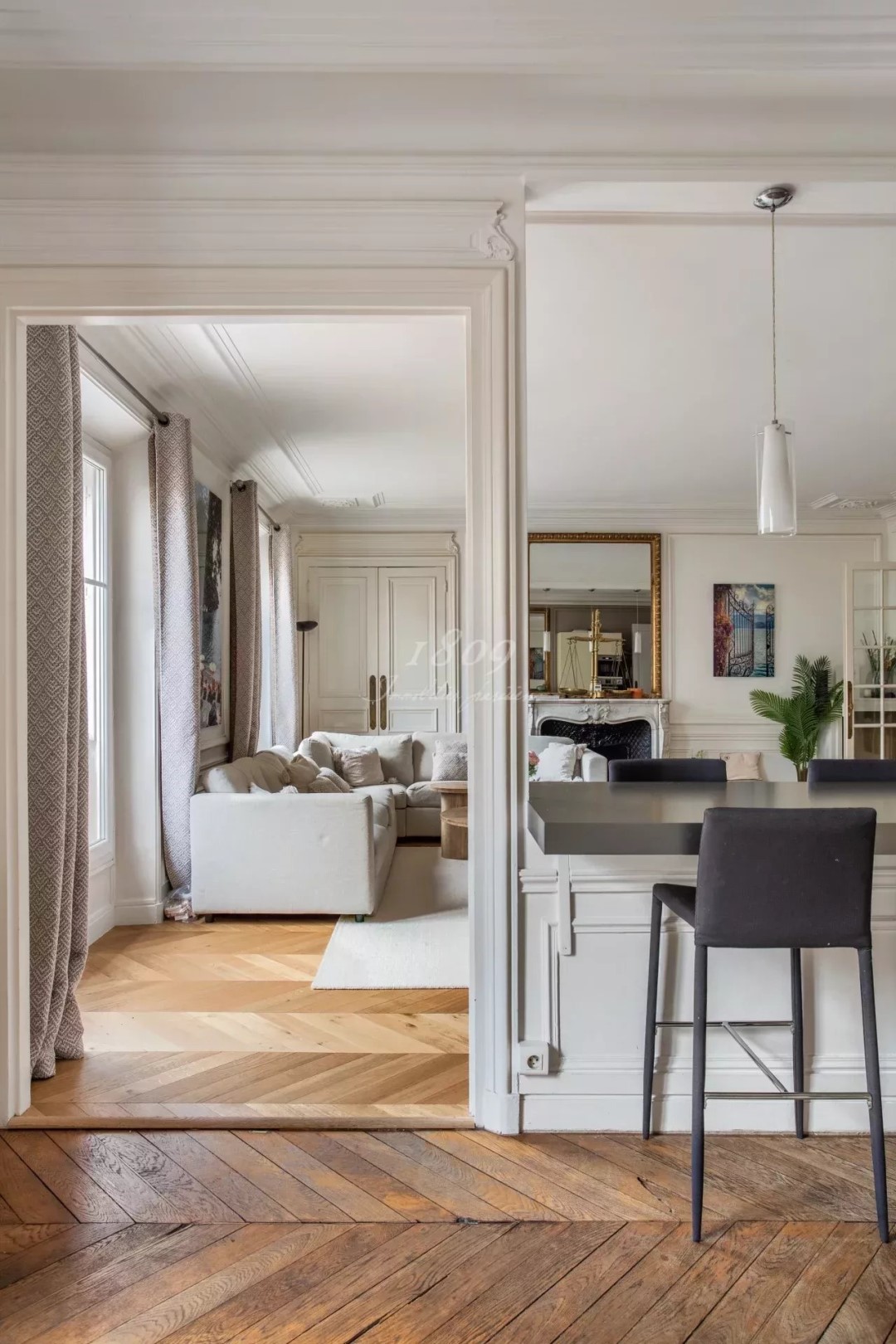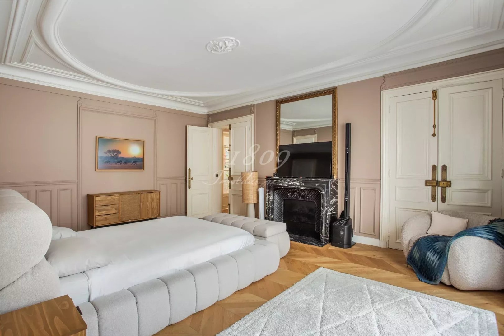 75008 Paris. We are pleased to offer for sale, at the foot of Parc Monceau, a beautiful 204 m² (Carrez Law) family apartment located on the 4th floor with elevator, occupying the entire floor of a 1920 stone building. It comprises an entrance gallery opening onto a large 55 m² living area combining a lounge and a fully equipped open kitchen with generous volumes facing the street. The apartment features four large bedrooms (21 m², 26 m², 27 m², 11 m²), including a master bedroom with its own bathroom and toilet, as well as two additional bathrooms and a separate toilet. A laundry room and abundant storage space complete this property. A classic Haussmann-style apartment with herringbone parquet flooring and four working fireplaces, an optimal star-shaped layout with no wasted space, dual exposure, and abundant natural light. The common areas are in good overall condition, and the building is well maintained. The apartment is sold with two maid’s rooms located on the 7th floor of the building, each with a Carrez surface area of 8 m² (16 m² in total), as well as a large 8 m² cellar. General co-ownership charges: €2,200 per quarter. Collective gas heating included in the charges. Co-ownership of 45 lots, no ongoing proceedings. Buyer’s fees: maximum 3.5% incl. VAT, included in the displayed sale price. Sales mandate No. 0385. Information regarding the risks to which this property is exposed is available on the Géorisques website: www.georisques.gouv.fr.