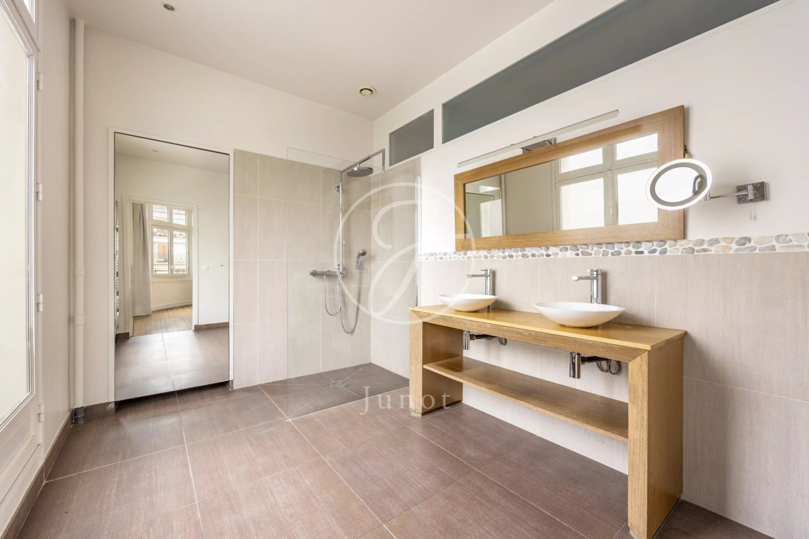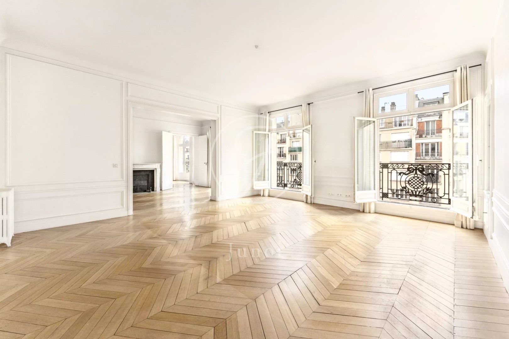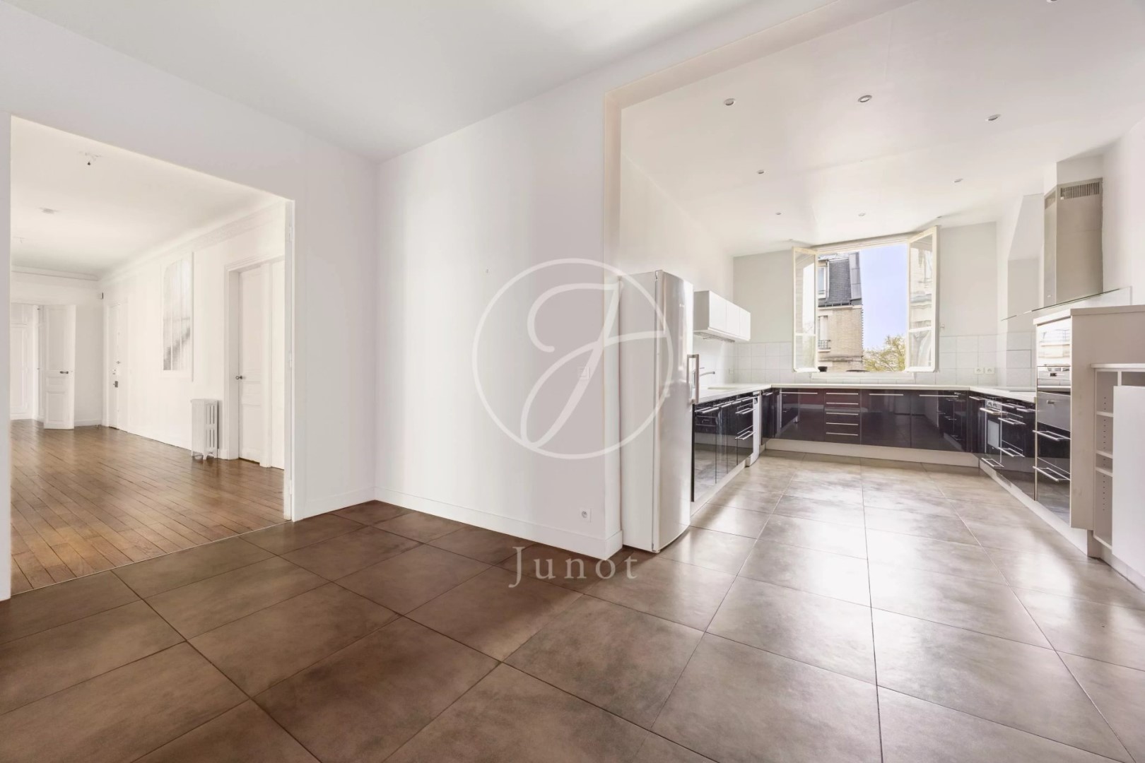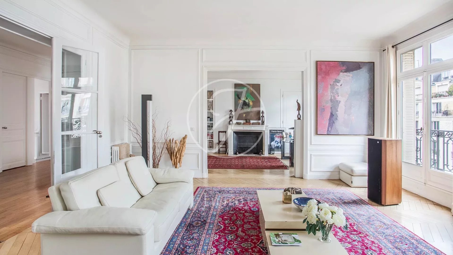 Close to Saint-Odile church and its square. On the fifth floor by elevator of an Art Deco-style freestone building, this light-filled 247.72sqm loi Carrez corner apartment benefits from triple exposure and unobstructed views. Bright and airy, it features an entrance gallery, a double reception room opening onto a balcony (south-east facing), a dining room, a large eat-in kitchen, four bedrooms including a master suite with shower room, a bathroom, a shower room, a laundry room, two separate toilets and plenty of storage space. The modular layout offers the possibility of five bedrooms. A double cellar completes this property.