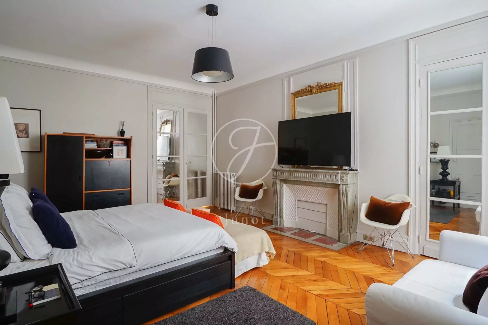 Located in a privileged setting right next to Parc Monceau, in a sumptuous freestone building, this exceptional family apartment occupies the second floor with elevator. With a surface area of 237.66sqm (241.06sqm floor area), it has been completely renovated using noble materials and finishes of remarkable quality. The volumes, enhanced by 3.10 m high ceilings, give the property a rare elegance. The apartment is built around a superb reception hallway featuring a top-of-the-range English-style kitchen, a refined dining room and a vast double living room bathed in natural light. The perfectly distinct night space features four generously proportioned bedrooms, offering absolute comfort and peace and quiet. It features two bathrooms with toilet, a shower room and two separate toilets. A wealth of perfectly integrated, custom-designed storage units underline the attention to detail. A very large cellar completes this rare property with exceptional features. Live-in janitor. School district Collège Carnot and bilingual international school