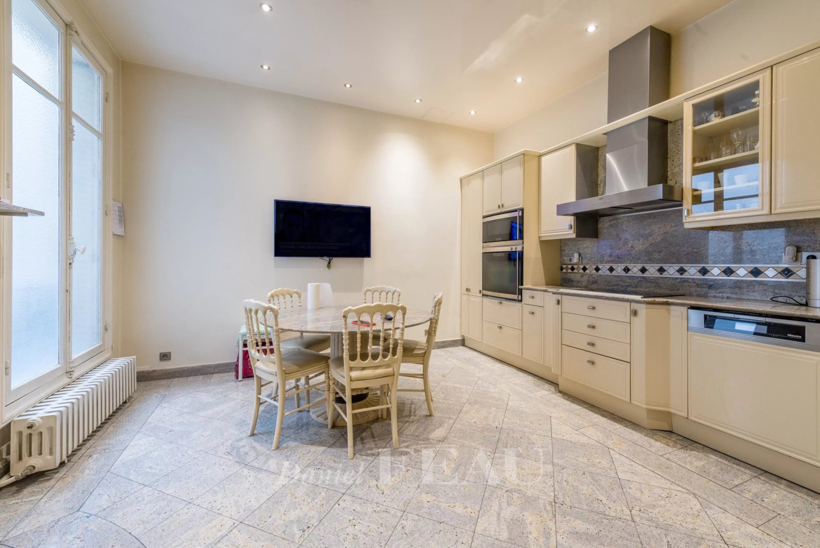 Sole agent. In a quiet street close to Parc Monceau, business centers, shops and international schools, on the third floor of a luxury freestone building, this superb family and reception apartment offers rooms with generous volumes. Ideally distributed over an area of ??over 250 m², it includes: a gallery entrance serving a triple east-west crossing reception, a fully equipped dining kitchen, a master suite with bathroom, toilet and dressing room, an office or bedroom, a hallway leading to the children's area with two beautiful bedrooms, a bathroom and a shower/hammam room, two toilets, a laundry room and plenty of storage. In good condition throughout, this exceptional property has retained all the characteristics of the very beautiful Haussmannians: herringbone parquet flooring in all the rooms, elegant moldings and imposing marble fireplaces as well as a ceiling height of 3.20m. Large cellar in annex.