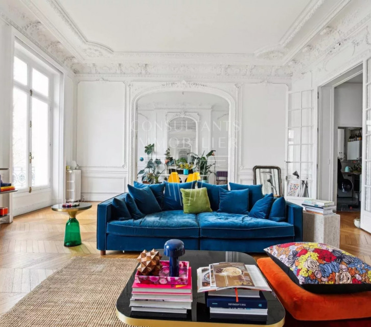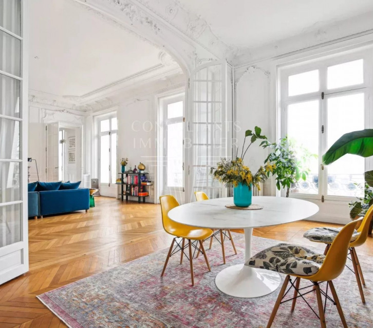 With an open view and north-east exposure this apartment411 m² (about 4418 ft²) comprises 10 rooms including 5 bedrooms, 4 bathrooms and 2 toilets. It is provided with a living room, with a None and with a cellar. It's located on the 4th floor with a lift. Heating : Collective fuel oil radiator. Others : intercom, digicode, guard, fireplace. Fees : 3.022.