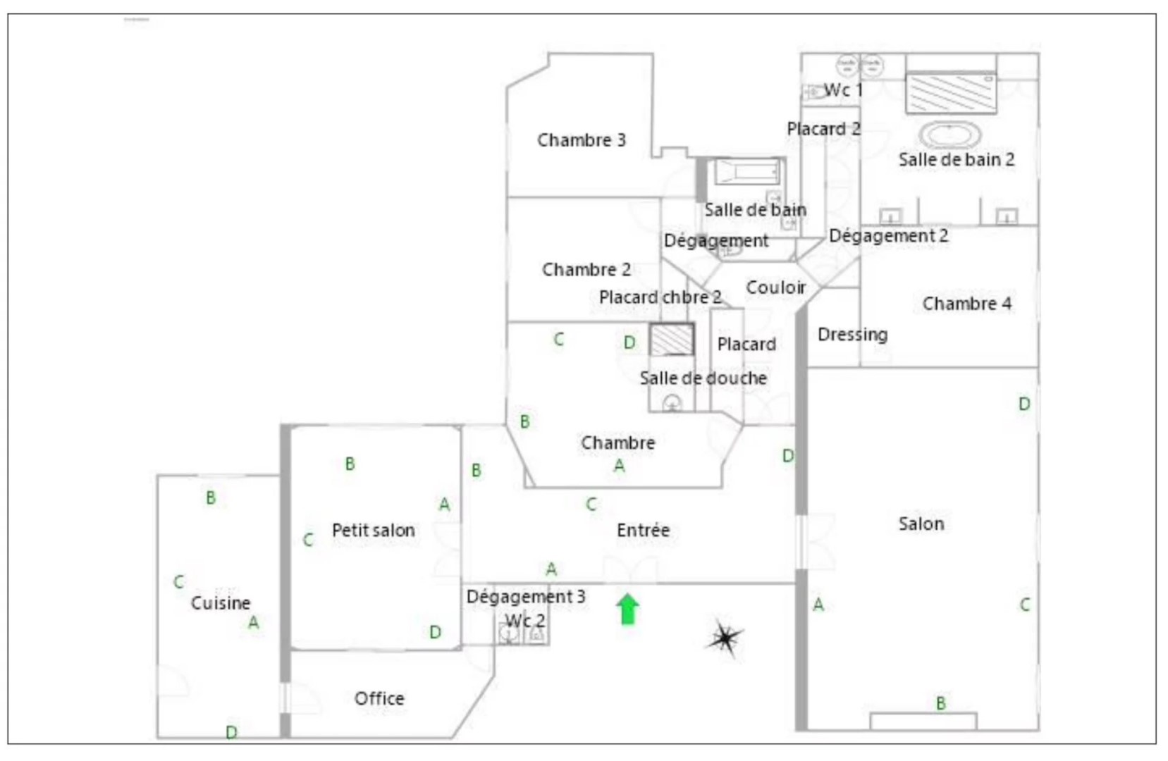 With an open view and south-east exposure this apartment257 m² (about 2763 ft²), built in 1905, in a building of 7 floors has 6 rooms including 4 bedrooms, 2 bathrooms and 3 toilets. It has a living room, dining room, a None and a cellar. It's located on the 2nd floor with a lift. Heating : Individual gaz radiator. Others : intercom, digicode, guard, fireplace, cable television.