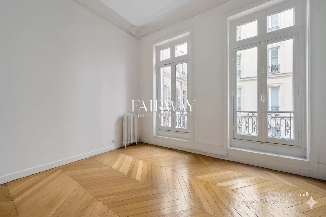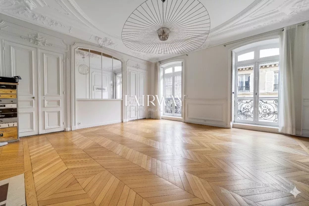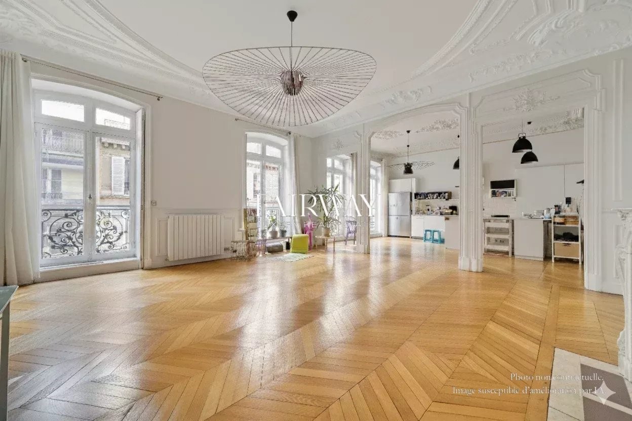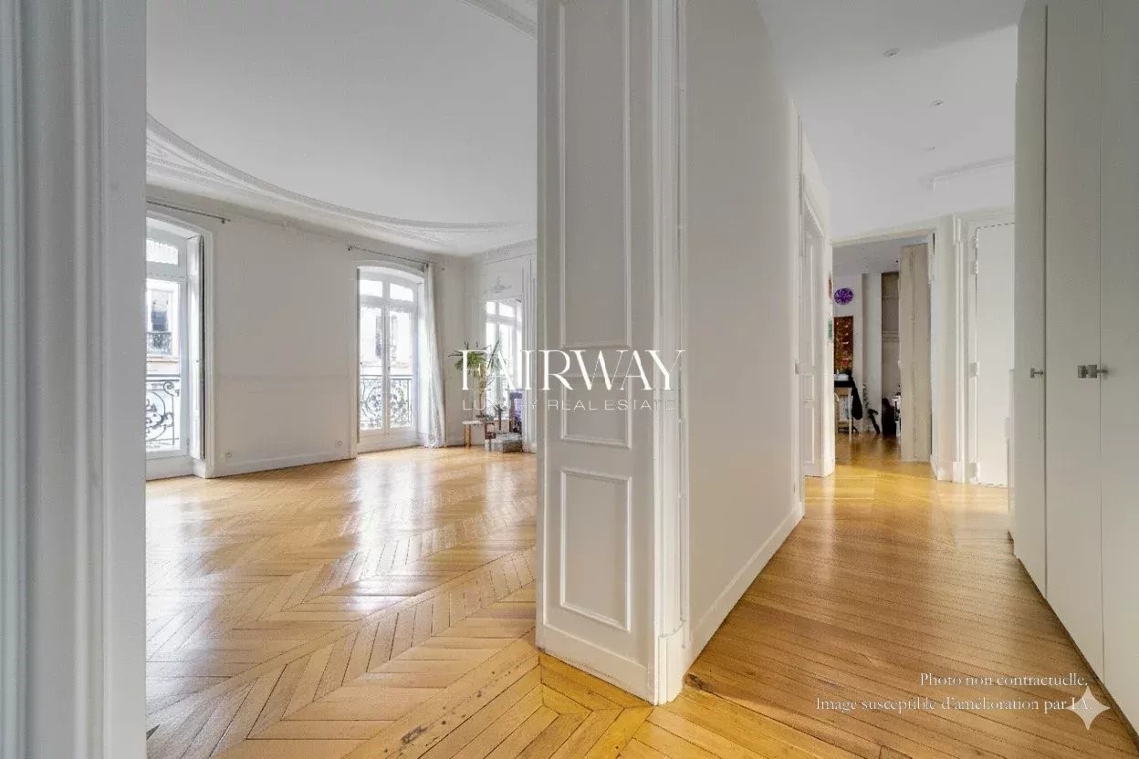 Fairway Luxury Real Estate offers you this elegant four-bedroom family apartment, located in the heart of Villiers in one of the neighborhood's finest old buildings. In a quiet street just a stone's throw from Parc Monceau and Rue de Lévis, the apartment occupies the third floor of a superb freestone building, rare for the quality of its architecture and common areas. It offers 188.25 m² loi Carrez for 192.73 m² of floor space, and benefits from a full southern exposure on the reception side, giving it remarkable luminosity throughout the day. Ceiling heights reach 3.50 m, amplifying volumes and reinforcing the feeling of elegance. The entrance gallery opens onto a large double living room with fully-equipped open kitchen. The sleeping area comprises four bedrooms, all of which are of a good size, making them ideal for family organization. A bathroom with toilet, a shower room with toilet, a laundry room and plenty of storage space complete this perfectly distributed layout. The charm of the past has been preserved, with herringbone parquet flooring, refined moldings, a period fireplace and generous volumes. A cellar completes the property. Optional parking space and utility room in the building. Bicycle parking available. Chaptal school district. Scheduled for vacancy in May 2026. Also discover our exclusive selection of properties in Paris, the Basque Country, the Côte d'Azur and Lisbon, offering unique opportunities for all budgets.