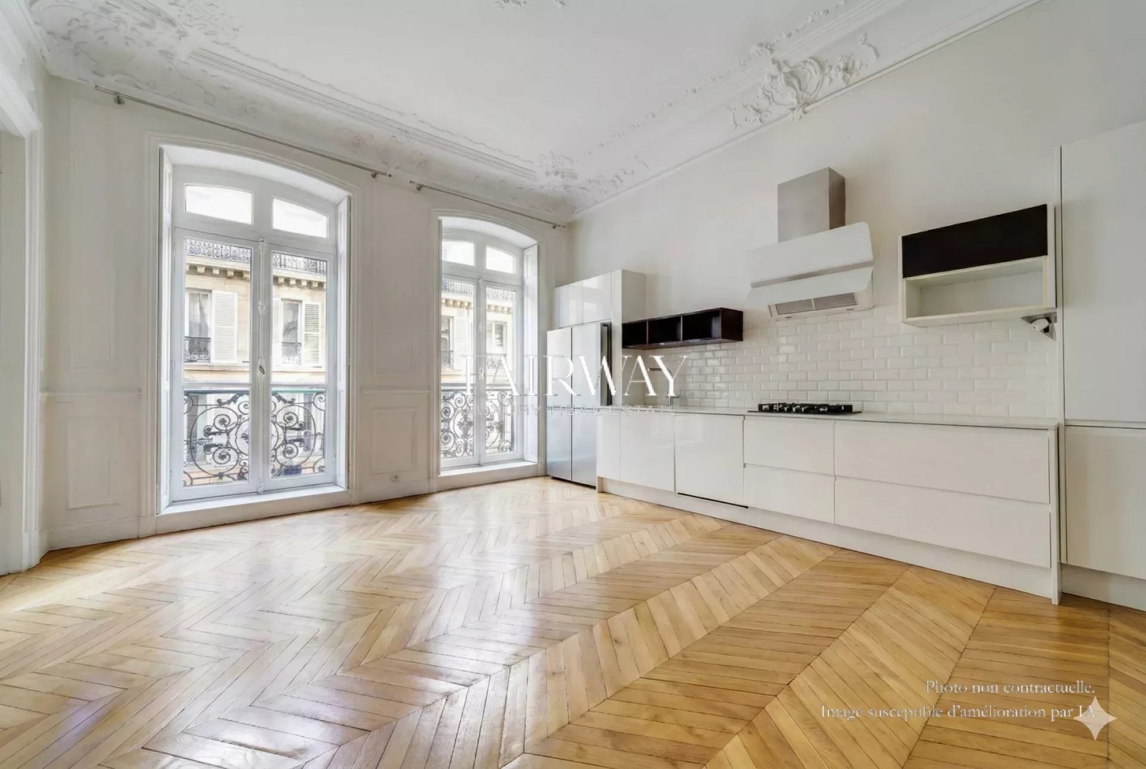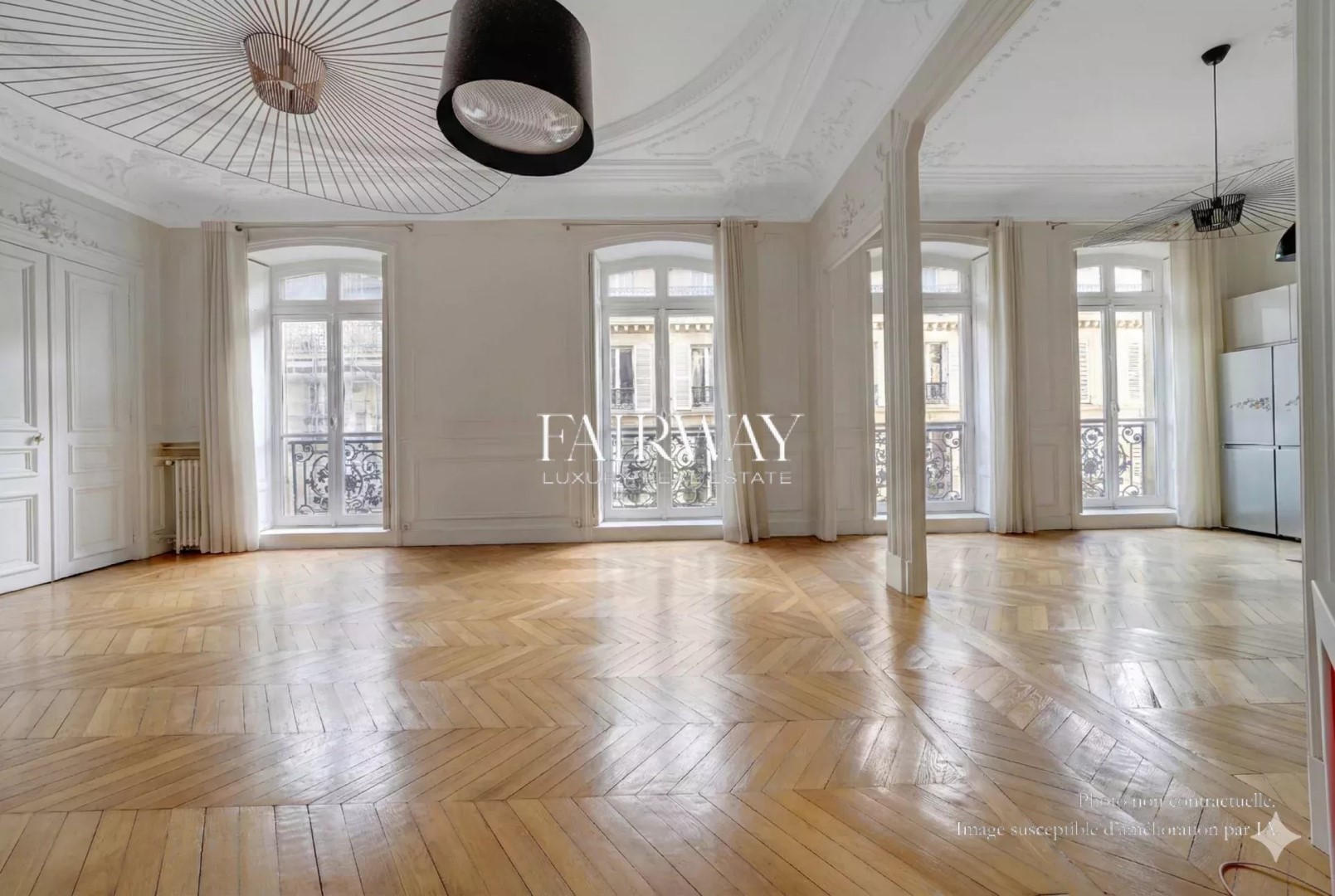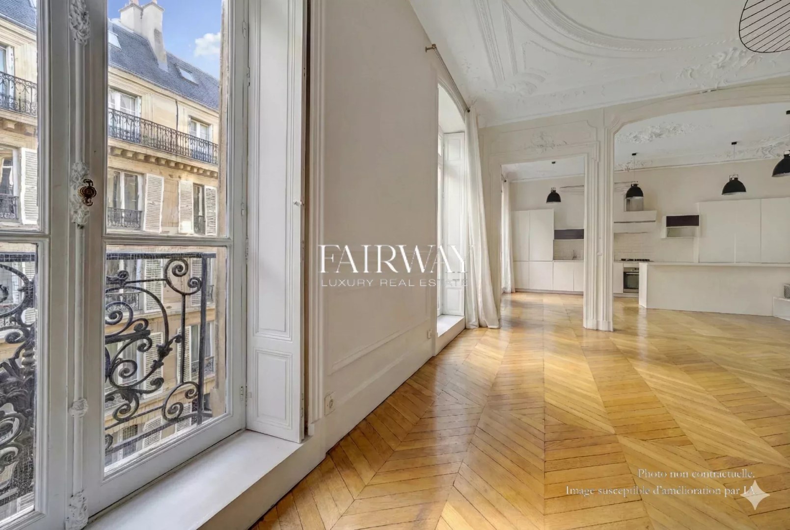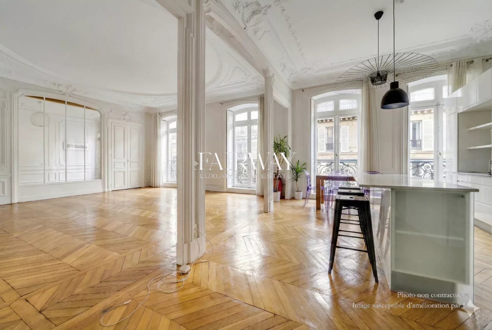 Fairway Luxury Real Estate offers you this elegant four-bedroom family apartment, located in the heart of Villiers in one of the neighborhood's finest old buildings. In a quiet street just a stone's throw from Parc Monceau and Rue de Lévis, the apartment occupies the third floor of a superb freestone building, rare for the quality of its architecture and common areas. It offers 188.25 m² loi Carrez for 192.73 m² of floor space, and benefits from a full southern exposure on the reception side, giving it remarkable luminosity throughout the day. Ceiling heights reach 3.50 m, amplifying volumes and reinforcing the feeling of elegance. The entrance gallery opens onto a large double living room with fully-equipped open kitchen. The sleeping area comprises four bedrooms, all of which are of a good size, making them ideal for family organization. A bathroom with toilet, a shower room with toilet, a laundry room and plenty of storage space complete this perfectly distributed layout. The charm of the past has been preserved, with herringbone parquet flooring, refined moldings, a period fireplace and generous volumes. A cellar completes the property. Optional parking space and utility room in the building. Bicycle parking available. Chaptal school district. Scheduled for vacancy in May 2026. Also discover our exclusive selection of properties in Paris, the Basque Country, the Côte d'Azur and Lisbon, offering unique opportunities for all budgets.