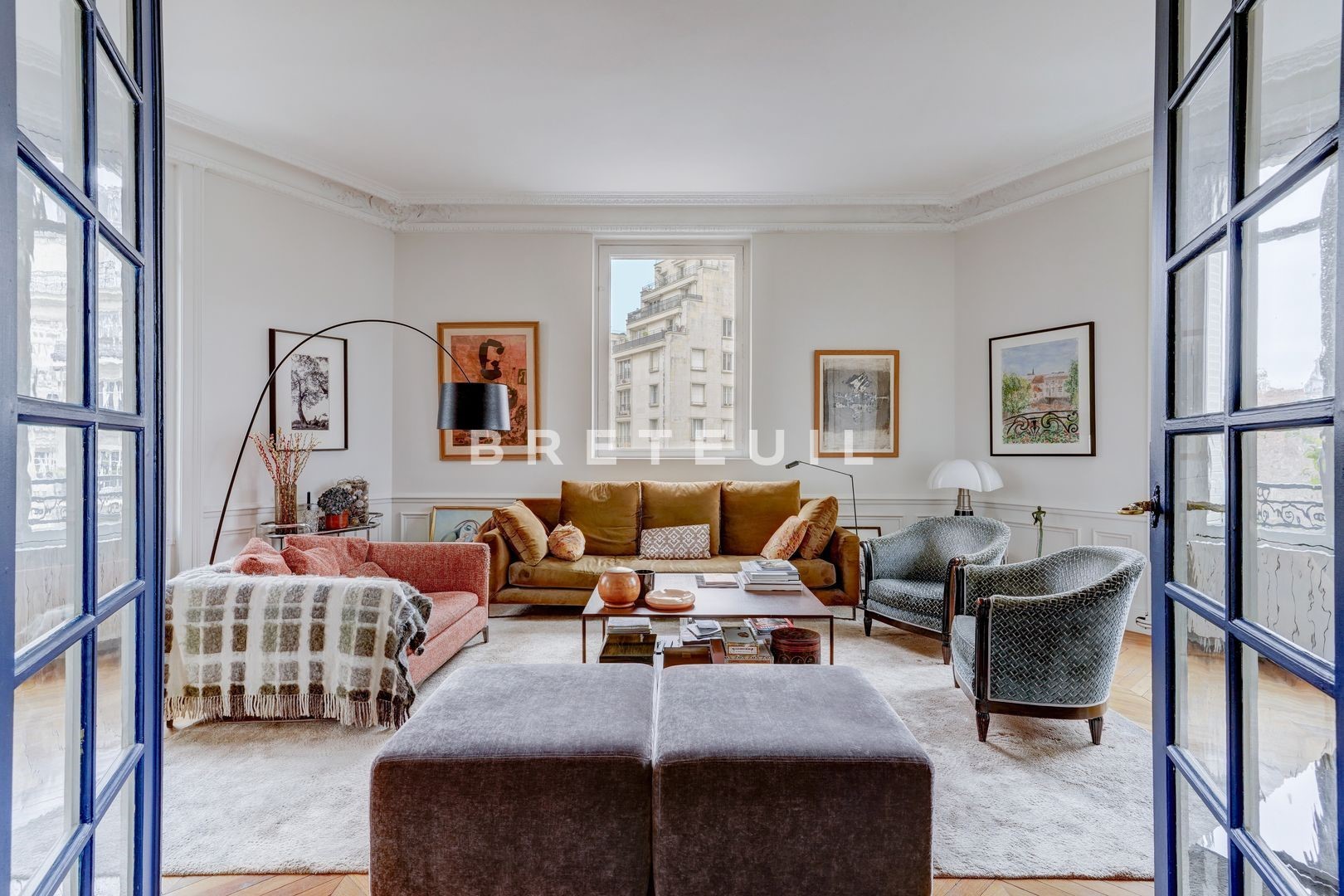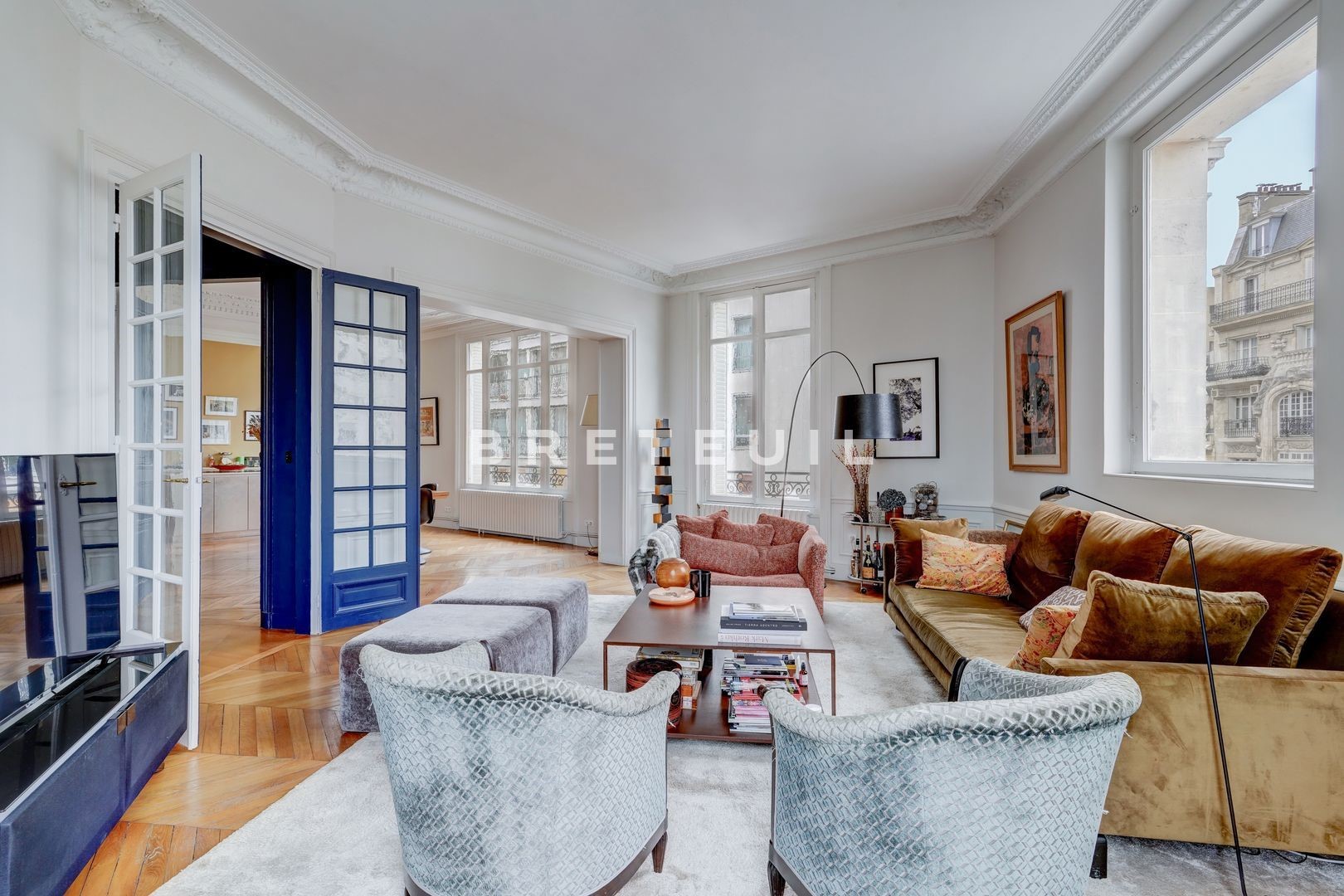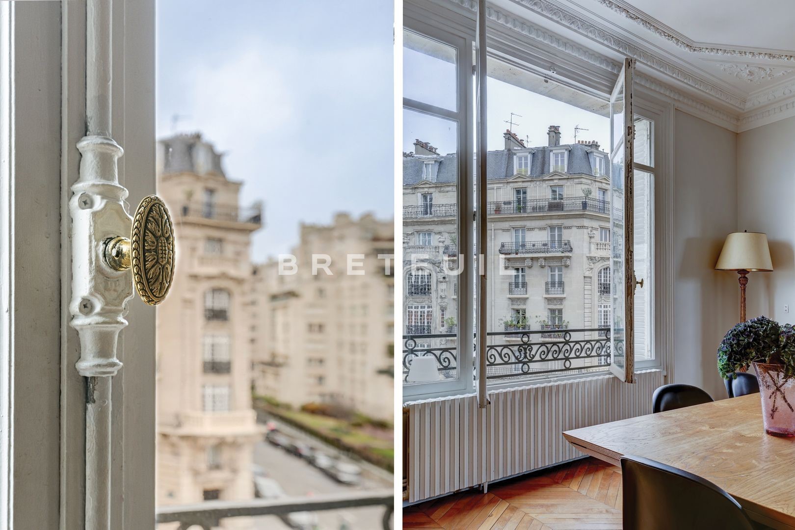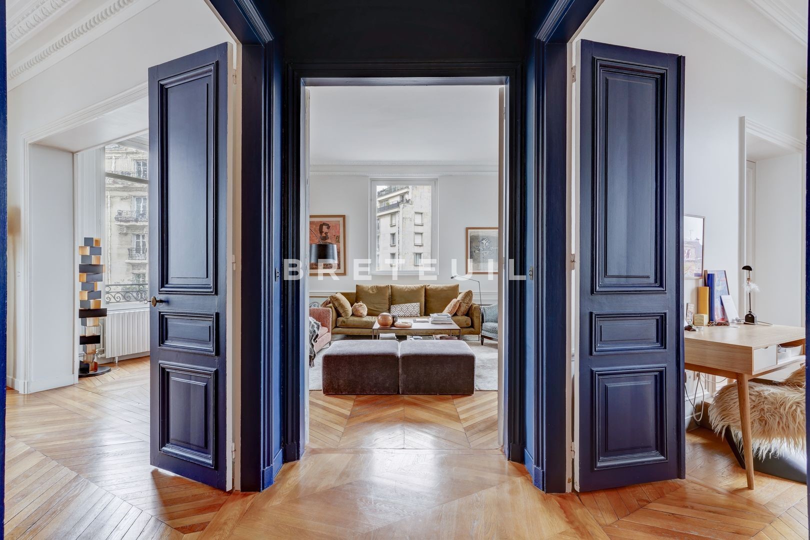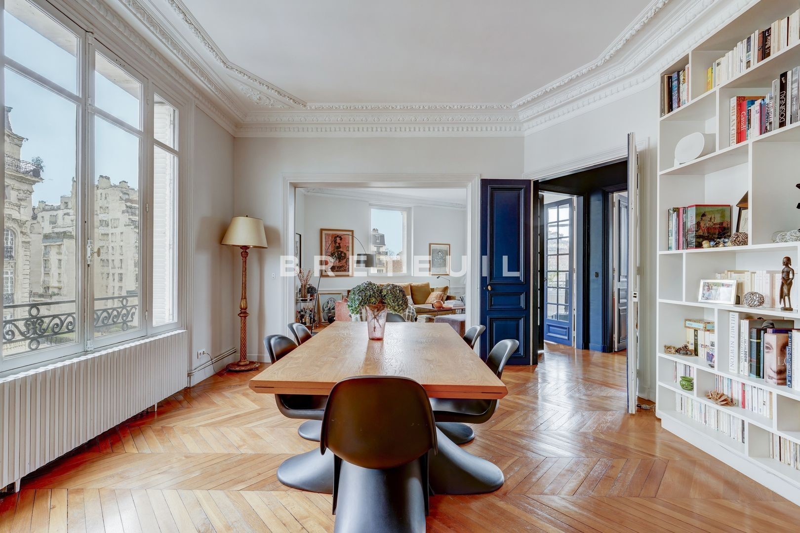 In a sumptuous private mansion built in 1893 and benefiting from a concierge service, stylish 163.3 m² Loi Carrez apartment on the 3rd floor served by elevator, in a quiet, residential street close to Place Pereire and renowned schools. Elegant entrance hall, large, bright double corner living room, open-plan dining kitchen, three bedrooms, two bathrooms, separate toilet. Large cellar.