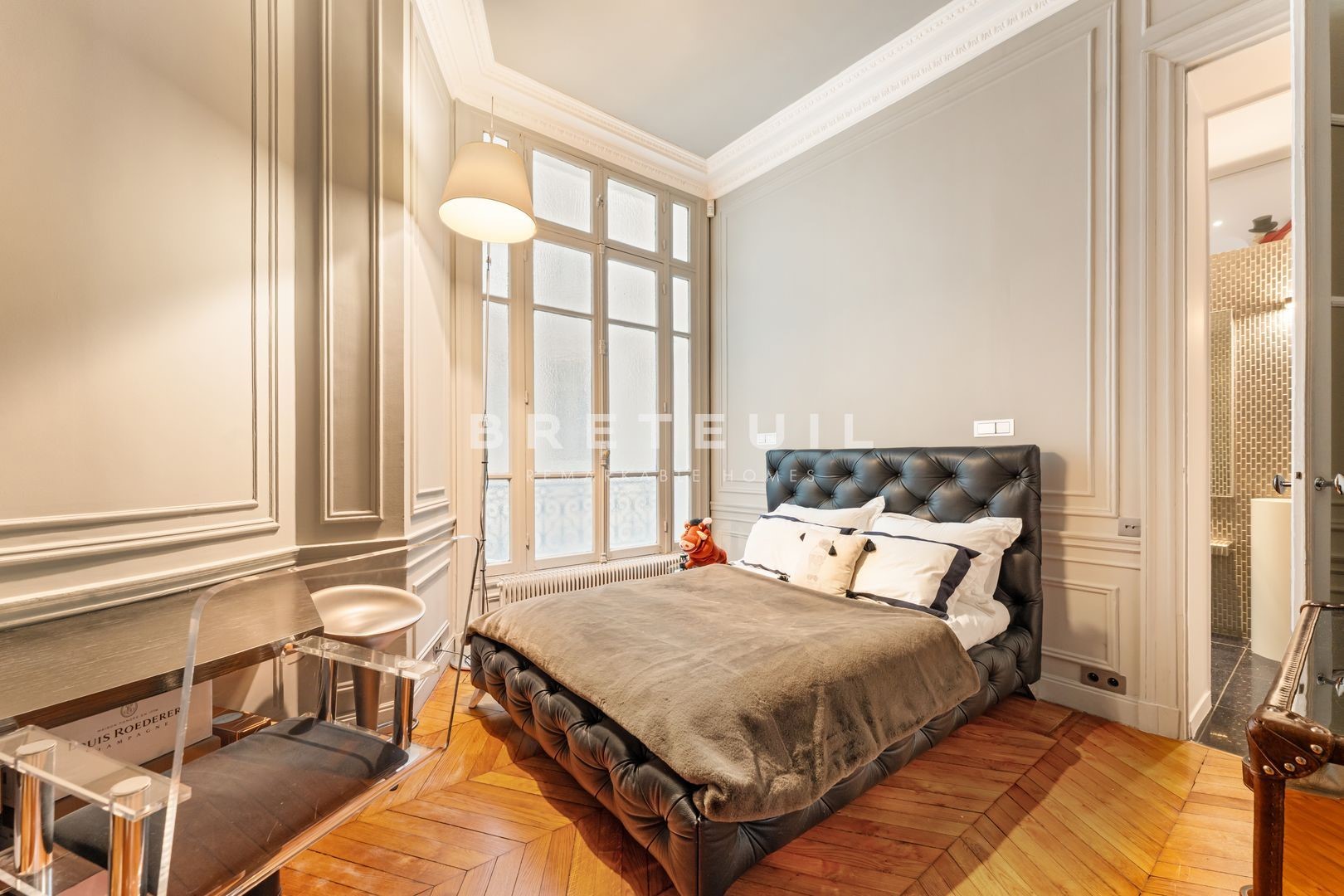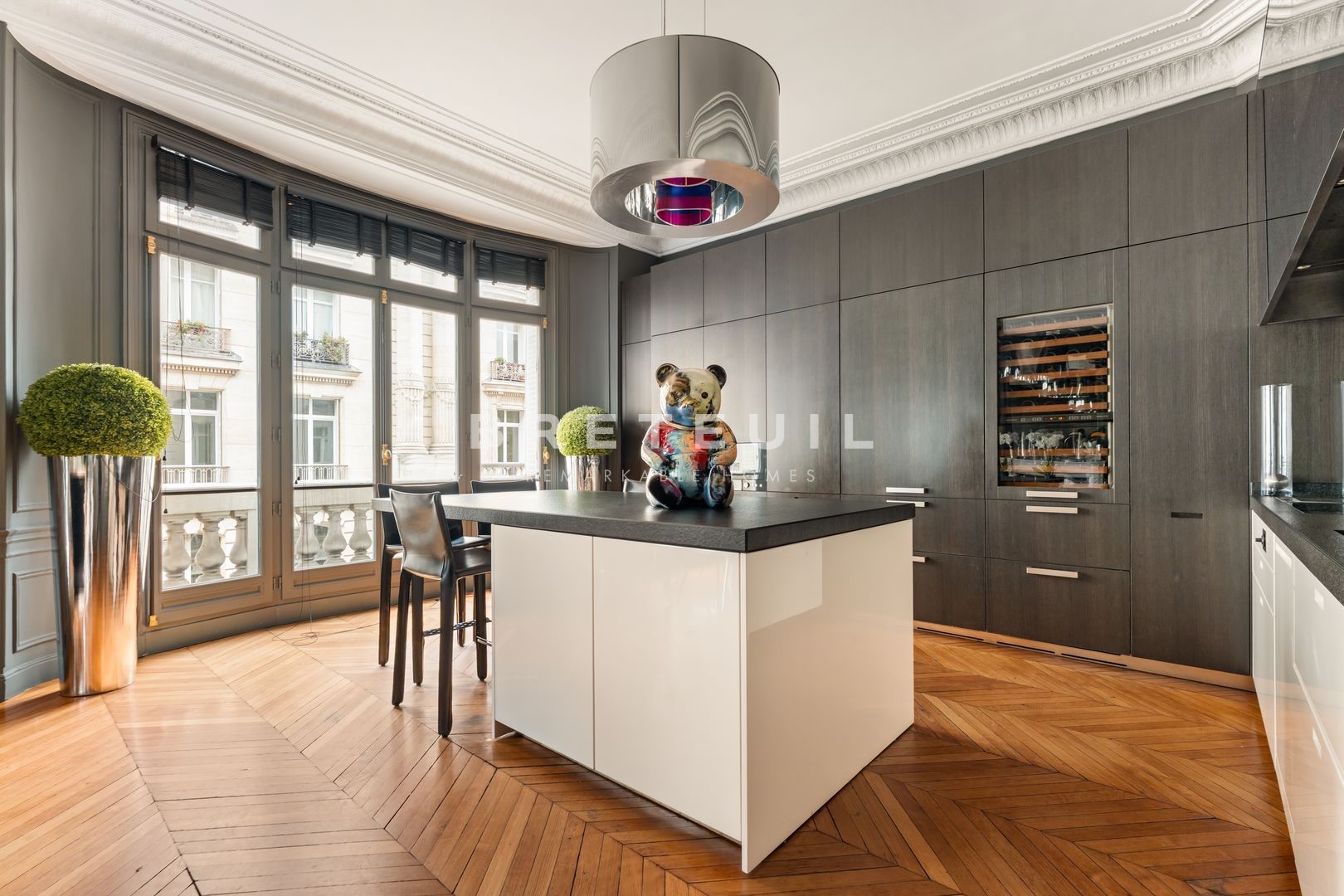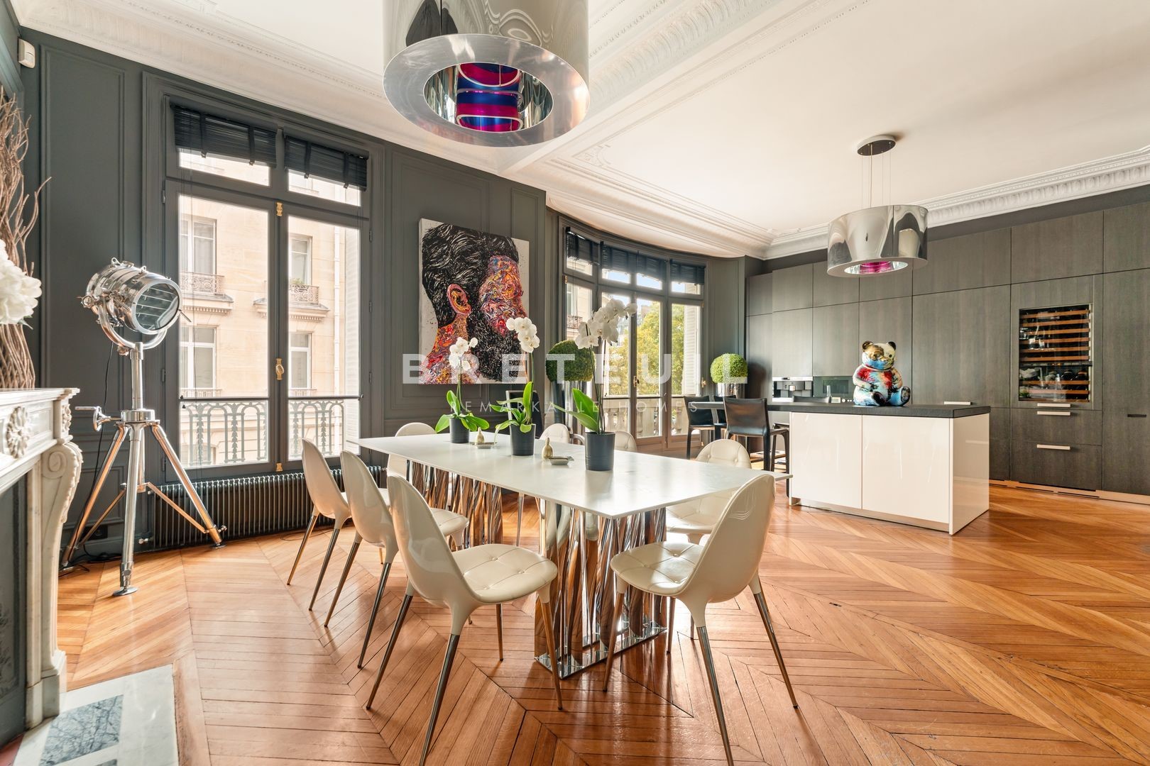 Saint-Ferdinand district, on the 2nd floor of a luxury Haussmann building, exceptional 200 m² loi Carrez apartment in perfect condition, fully air-conditioned, renovated with quality materials, combining the charm of the past and the present. Entrance hall, vast double reception room with high ceilings, fully equipped kitchen opening onto the dining room, three spacious bedrooms including a master suite with dressing room, bathroom, shower room, laundry room and two toilets. Service room accessible by elevator. Cellar.