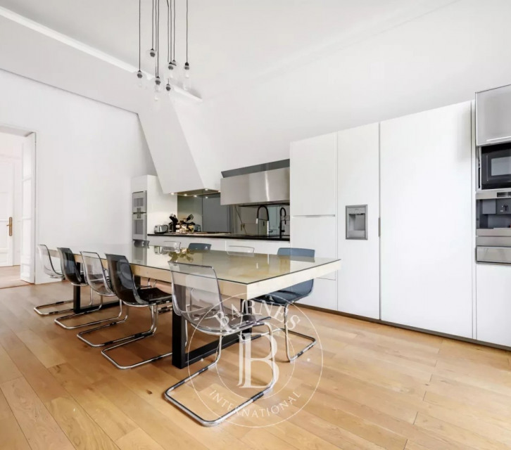 Paris 17 – Arc de Triomphe – Elegant 4-Bedroom apartment with high ceilings and Parking On the second floor of a prestigious Haussmann-style building with elevator and caretaker, this elegant apartment offers a surface area of 267 sqm ("Carrez" law). It features an impressive entrance gallery, a double living room facing southwest with 3.90-meter-high ceilings, a fully fitted and equipped dining kitchen, a master suite with walk-in closet, bathroom/shower room and toilets, three additional bedrooms, a separate bathroom, two independent toilets, and a laundry area. A cellar adds to the property’s amenities. A parking space in the building’s courtyard is available as an option.
