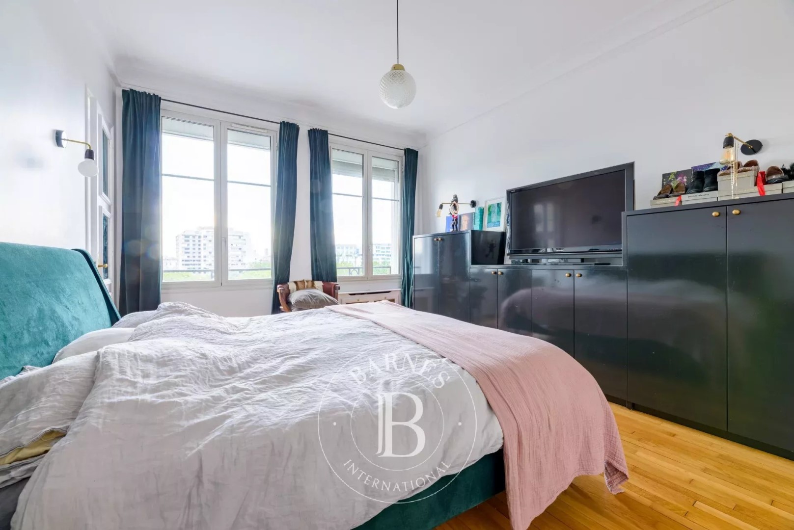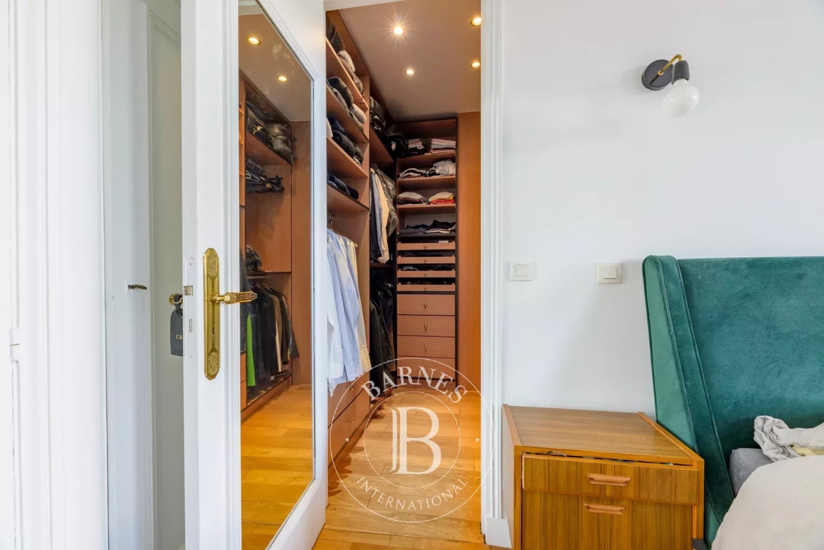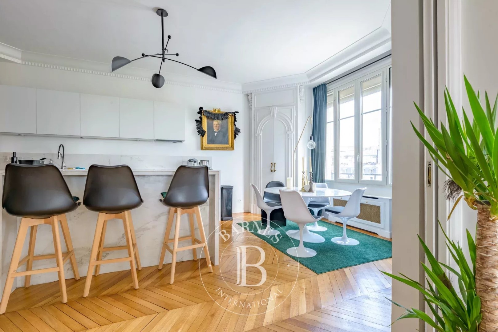 Paris 17 - Ternes / Maillot - Corner apartment - 5 bedrooms and independent studio. 242 m² apartment located on the fifth floor of a 1930s building, completely renovated in a contemporary style with a double reception room, a large fitted kitchen, 5 bedrooms, two bathrooms and a shower room. The property also includes a studio with direct access from the apartment (or 6th bedroom) with a shower room. The apartment faces south and west and benefits from a clear view. It's sunny. The night area is equipped with air conditioning. Two cellars complete this property. Possibility of parking nearby