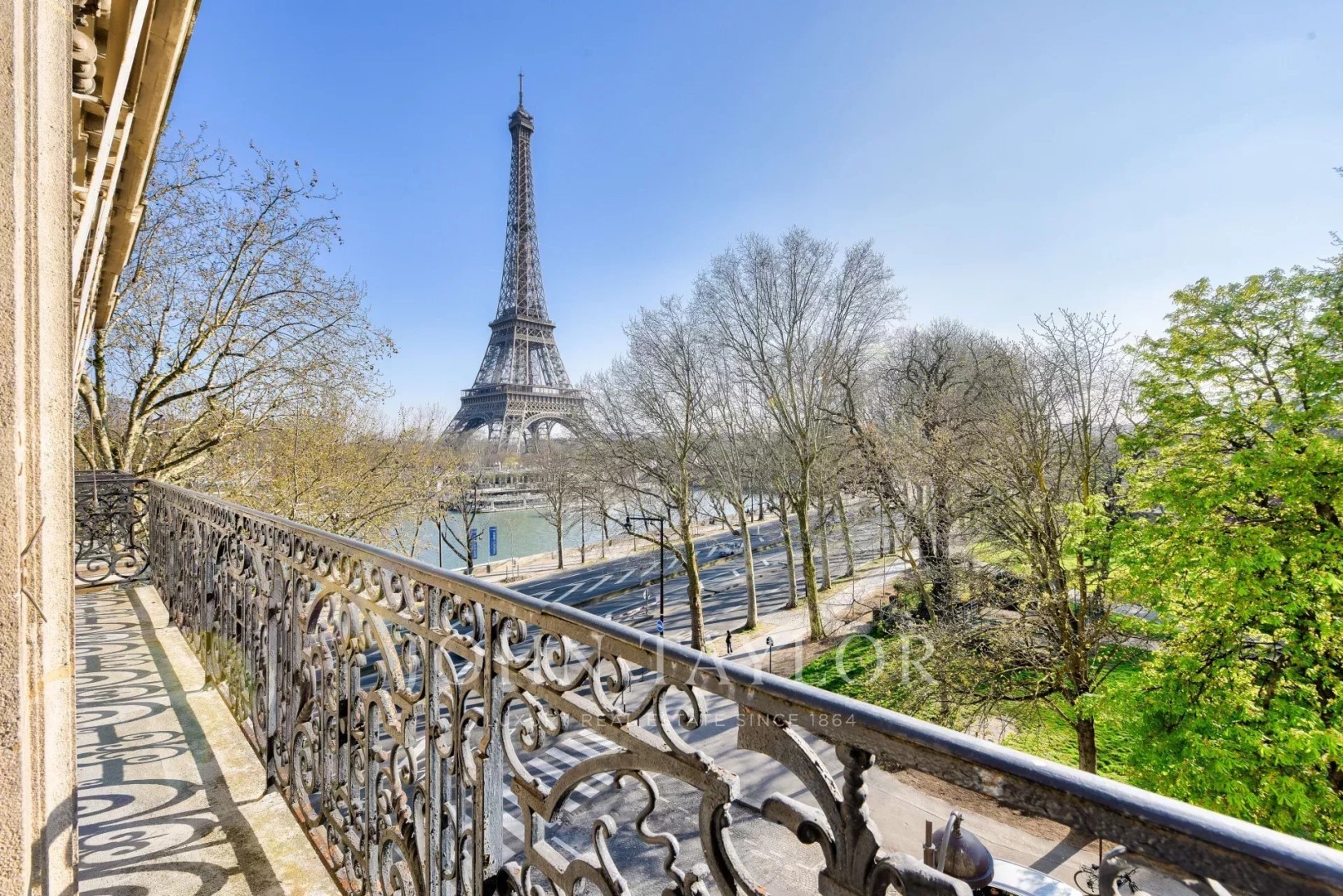 Sole agent. Paris 16. Trocadéro. On the 3rd floor with elevator of a magnificent old stone building, refurbished 160.57 m² apartment with a balcony, enjoying magnificent views of the Seine, the Eiffel Tower and the Trocadéro Gardens. Sunny, with south and west exposure, this very attractive apartment is sold furnished, ready to live in. It includes : - an entrance gallery - a spacious living-dining room opening onto a balcony with views of the Trocadero Gardens, the Seine and the Eiffel Tower - a separate, fully-equipped kitchen - a spacious, corner master bedroom with dressing room and bathroom, and direct views of the Eiffel Tower and Seine River - two bedrooms with en-suite shower rooms - laundry room - guest toilet Reversible air conditioning in all rooms, spacious rooms, exceptional views. Secure building with janitor, basement cellar.