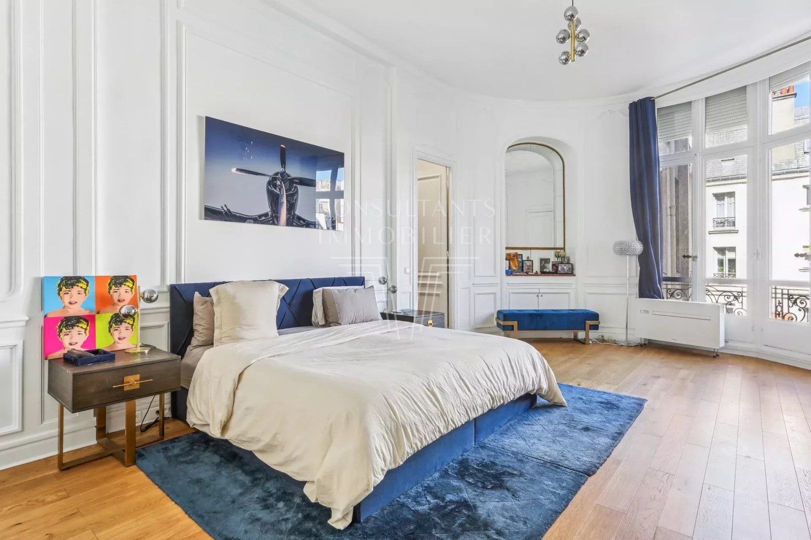 With an open view and west exposure this apartment268 m² (about 2881 ft²), built in 1881, in a building of 8 floors contains 7 rooms including 3 bedrooms, 2 bathrooms and 1 toilet. It is equipped with a living room 65 m² (about 699 ft²), with a None and with a parking lot. It's located on the 3rd floor. Heating : Collective gaz radiator. Others : digicode, guard, fireplace. This text is an automatic translation.