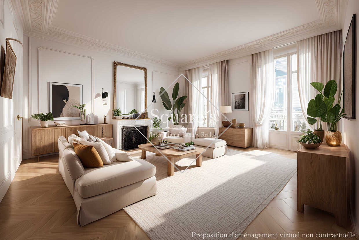 On the noble floor of a beautiful, very high standard building, both reception and family opening onto a long balcony. As an extension of a sumptuous entrance gallery, a double reception room of 70m2, a dining kitchen, a laundry room, a dressing room, four large air-conditioned bedrooms, a bathroom, a water, two toilets and a cellar. This property benefits from exceptional volumes with a ceiling height of 3.76m, excellent distribution, all the property