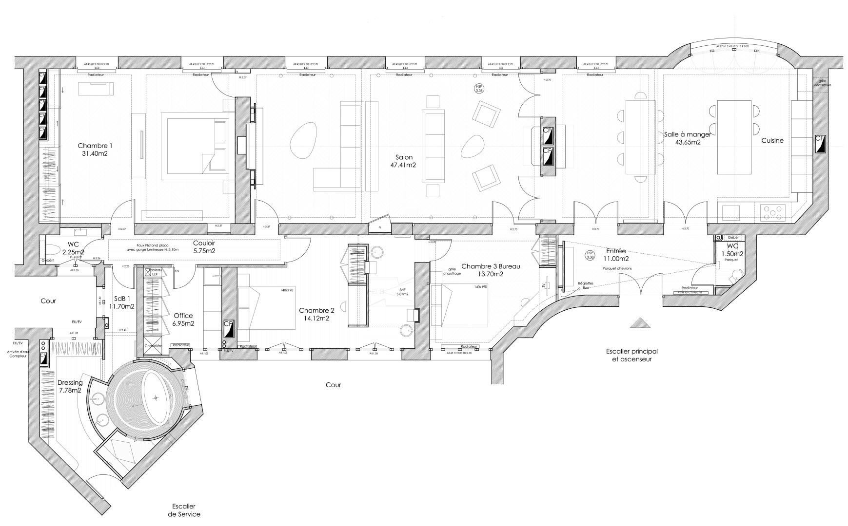 In a quiet environment, with south-east exposure this apartment202 m² (about 2172 ft²), built in 1910, in a building of 8 floors comprises 5 rooms including 4 bedrooms, 1 bathroom and 2 toilets. It is provided with dining room, with a Fitted kitchen/dining room and with a cellar. It's located on the 3rd floor with a lift. Heating : Individual. Others : intercom, digicode, guard. This text is an automatic translation.