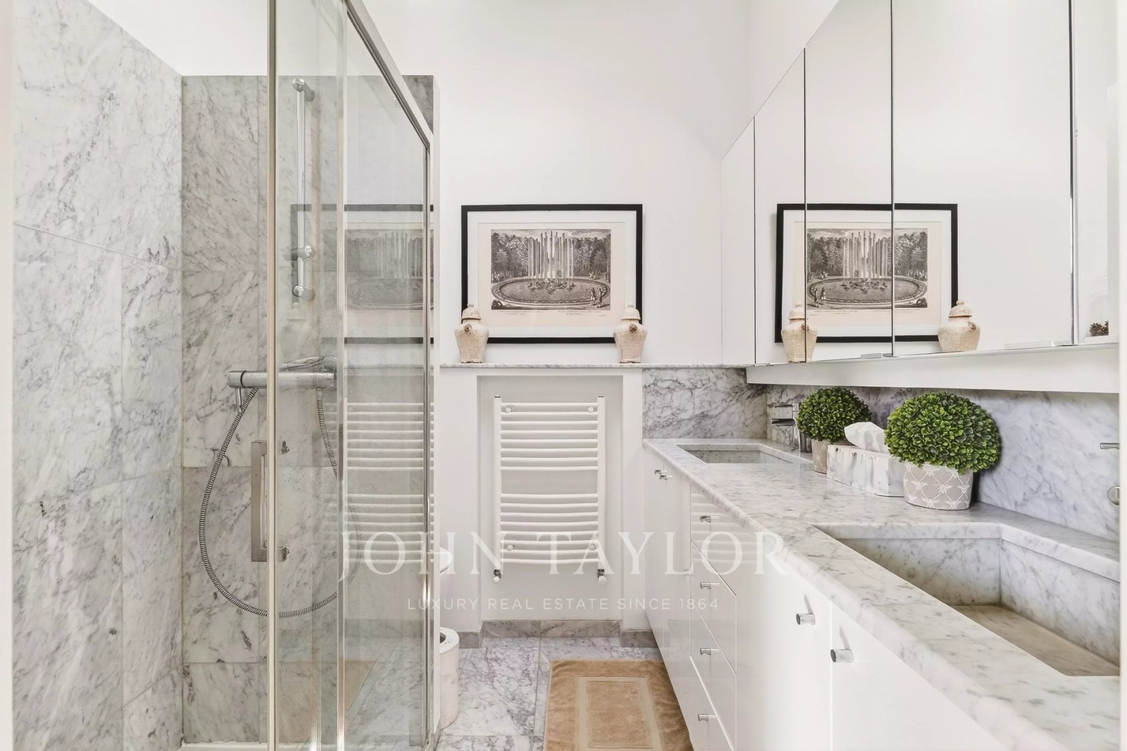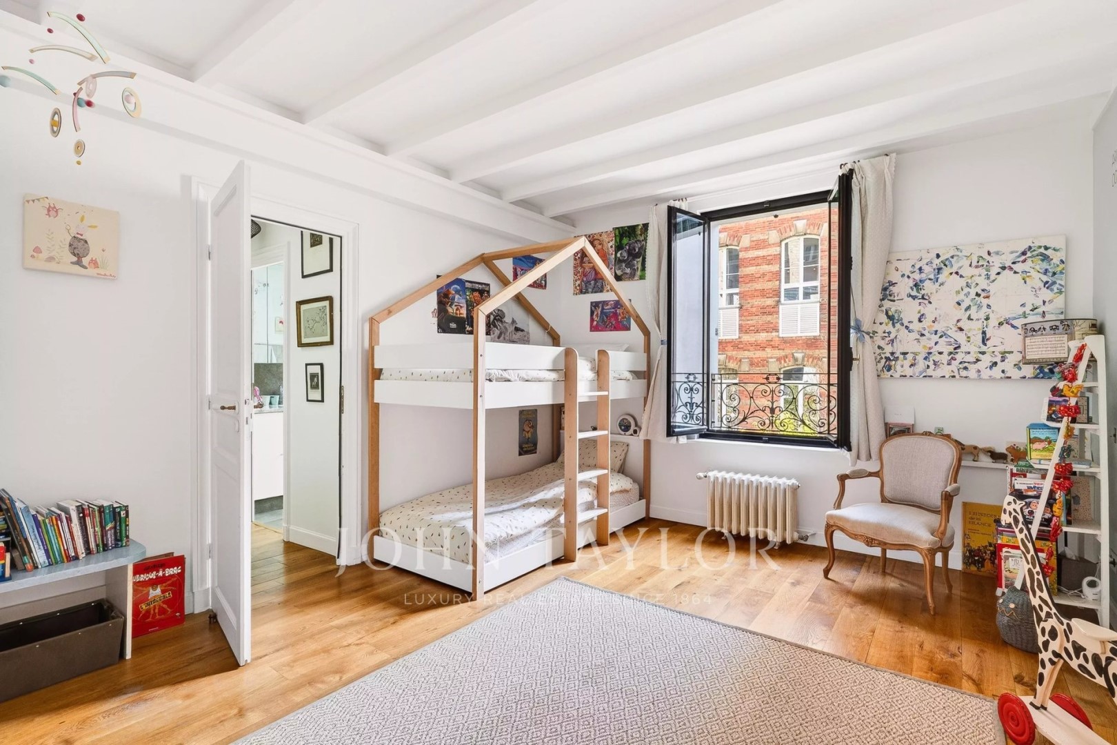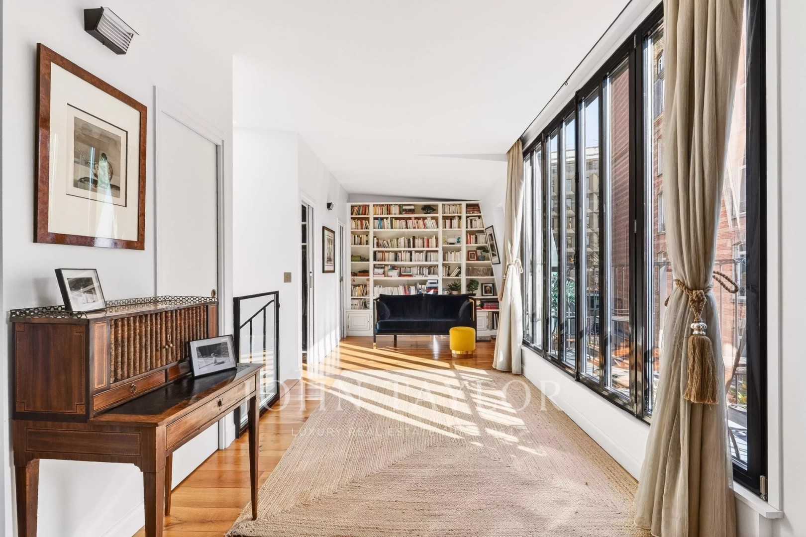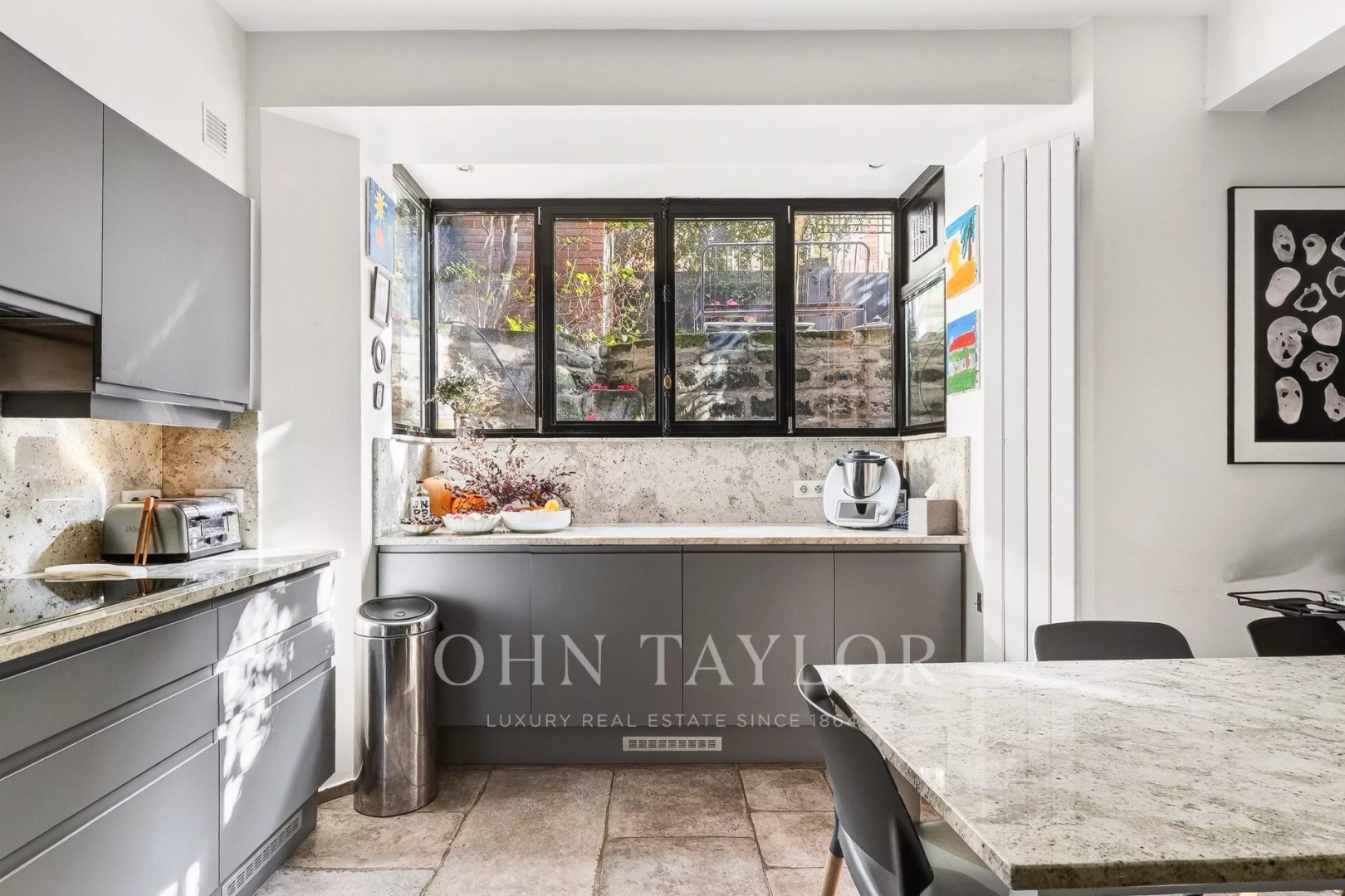 In a private lane near Avenue Foch, we offer for sale a 252 m² mansion house with an elevator and a 65 m² private garden. This beautiful 1900 townhouse is set back from a pleasant, sunny, south-east-facing garden. Ideal for a family, it is composed as follows: Elevated level 1: - Reception areas. Living room and dining room with two bow windows opening onto the garden. - Guest toilet English course: - Renovated, fully-equipped galley kitchen - Laundry room - Toilets and shower room - A sports room (old swimming pool that can easily be refurbished) Level 2: - A family room with two areas for parents and children. Level 3: - Two bedrooms with plenty of storage space - A bathroom with toilet Level 4: - 50m² master bedroom with balcony - Shower room - Two dressing rooms Elevator. This private mansion boasts a privileged location, close to shops and transport, yet in absolute calm. The private garden is sunny and very pleasant. The house has been recently renovated. Parking space in front of the house on the private driveway.