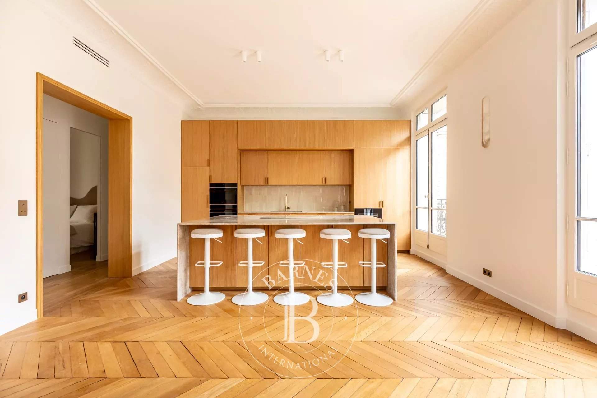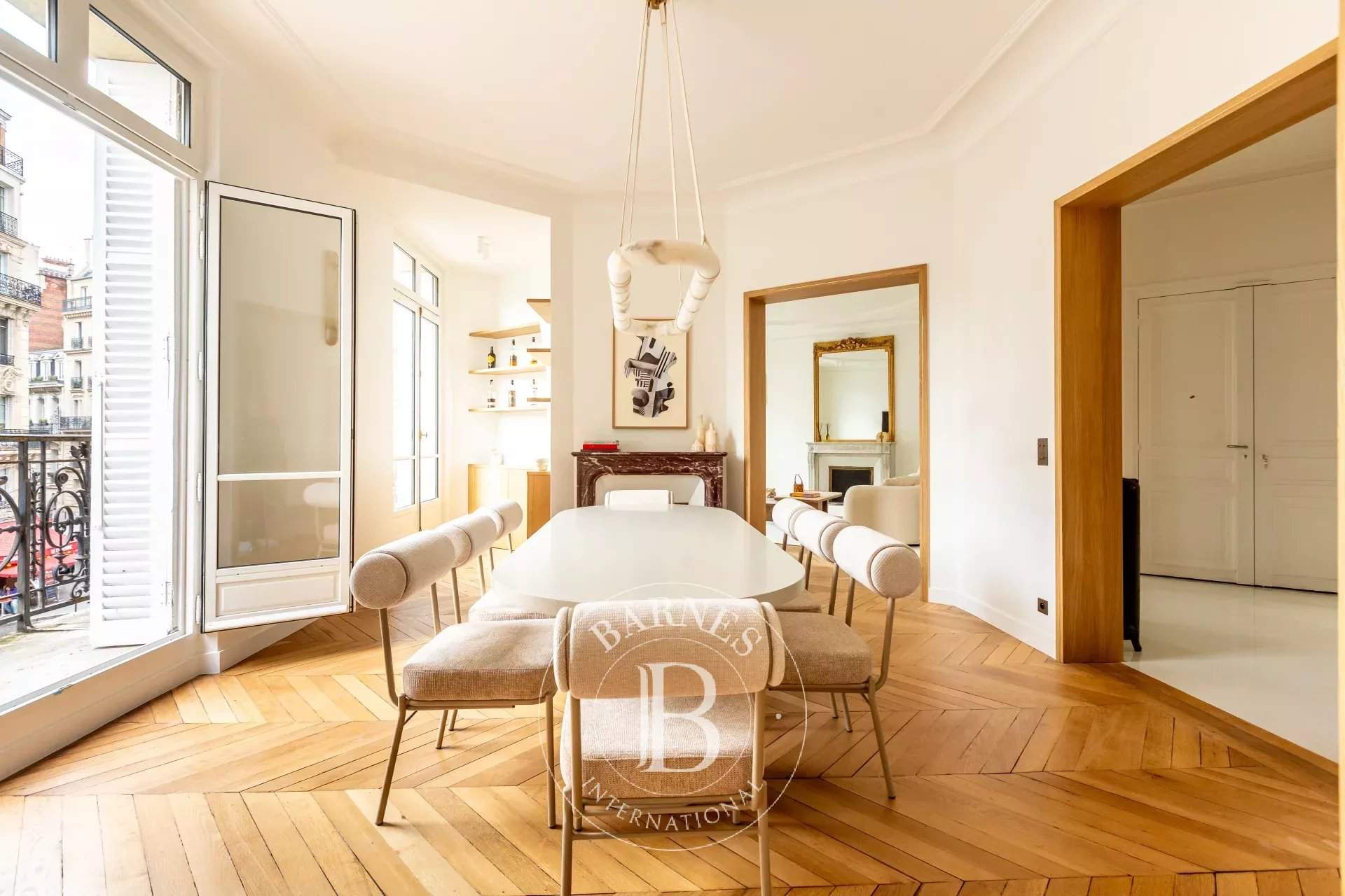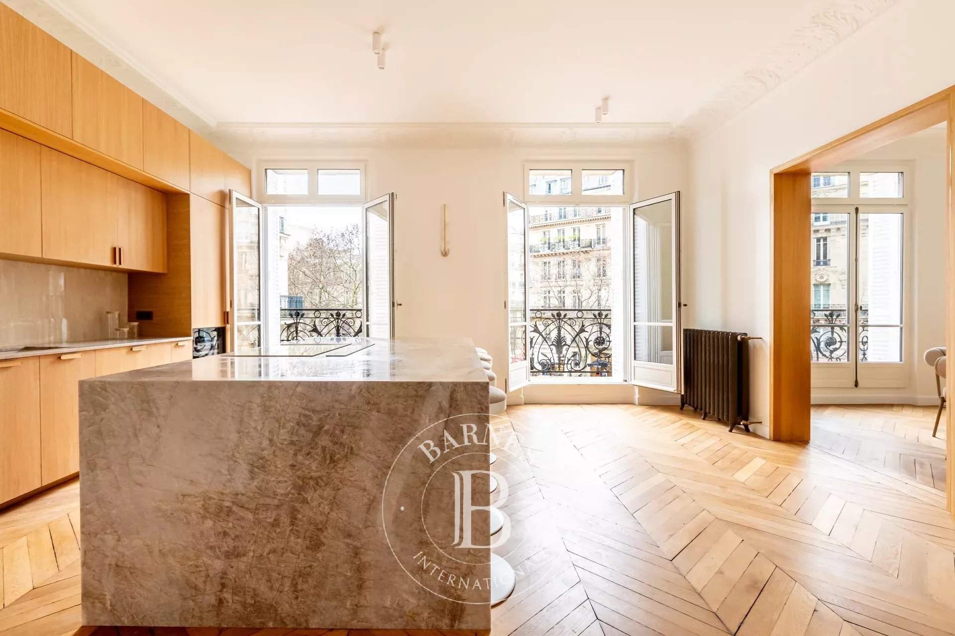 Located on the second floor of a Haussmann building, this apartment, completely renovated with high quality materials, offers exceptional volumes with 3.30m ceiling height and all the charm of the old days. On a corner, with a clear view, it opens onto a long balcony overlooking the Arc de Triomphe on one side and the Eiffel Tower on the other. It consists of an entrance, a living room, a dining room and a kitchen. The sleeping area offers four en-suite bedrooms, with bathroom or shower room. A cellar completes this rare property for sale. Information on the risks to which this property is exposed is available on the GeoHazards website: www.georisques.gouv.fr