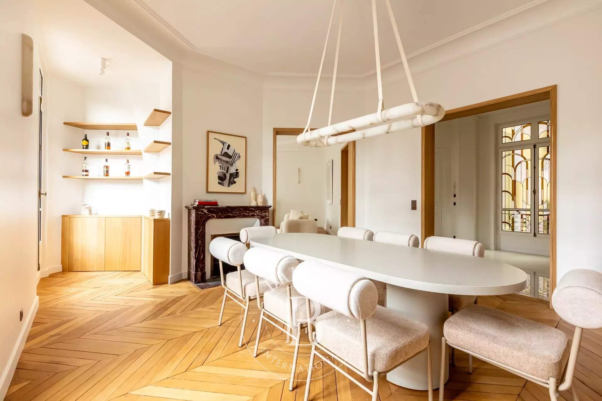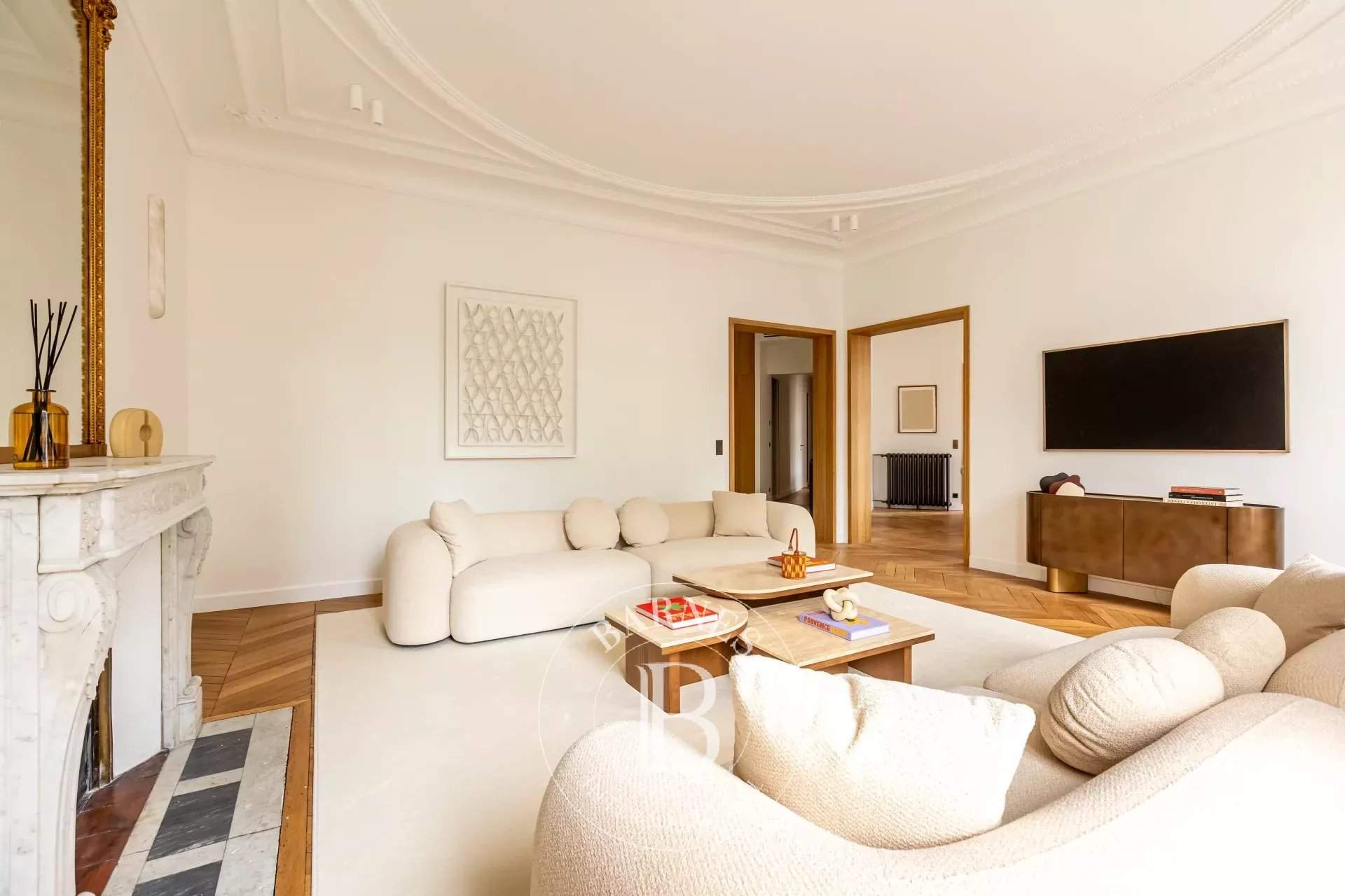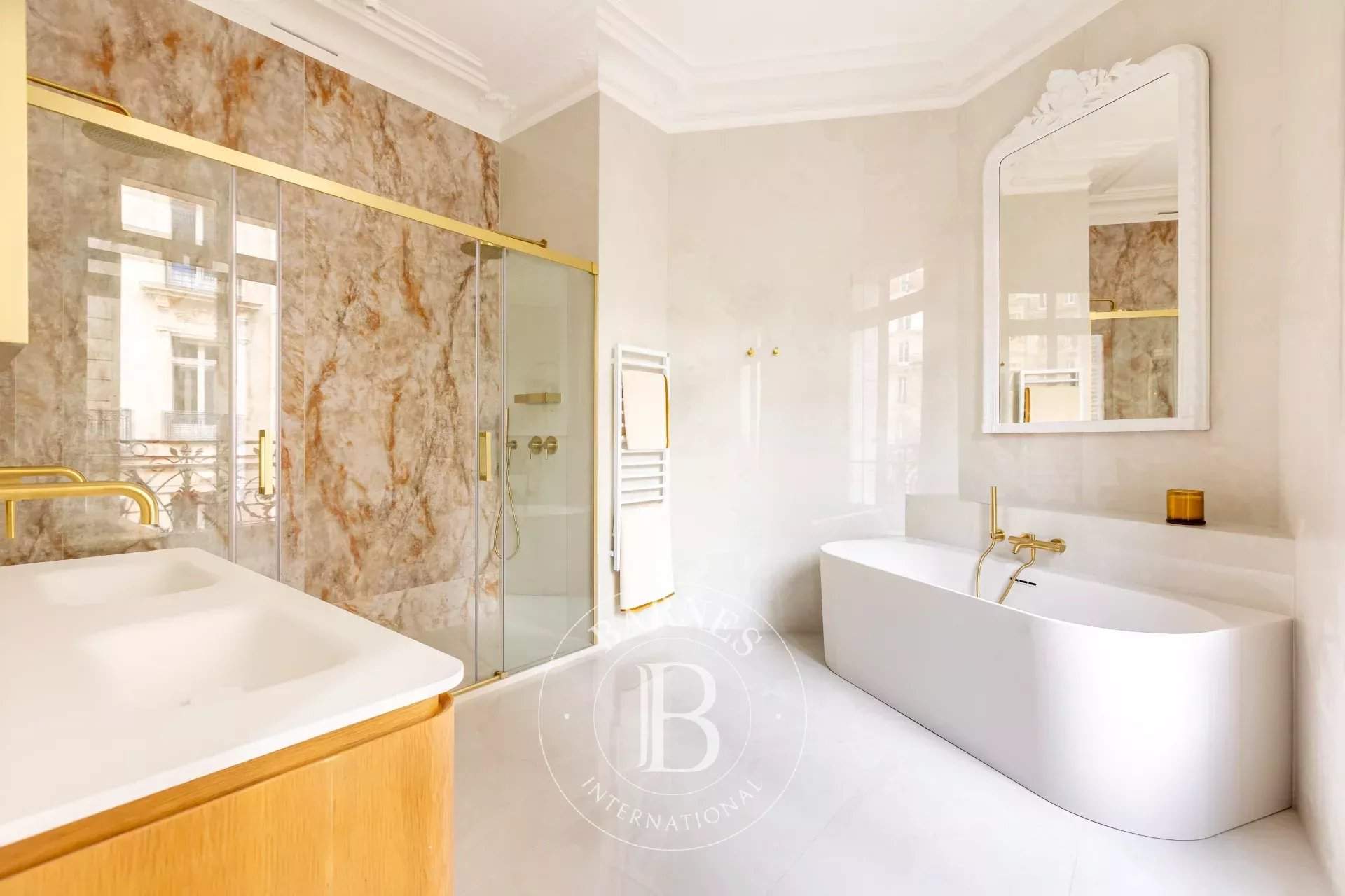 Located on the second floor of a Haussmann building, this apartment, completely renovated with high quality materials, offers exceptional volumes with 3.30m ceiling height and all the charm of the old days. On a corner, with a clear view, it opens onto a long balcony overlooking the Arc de Triomphe on one side and the Eiffel Tower on the other. It consists of an entrance, a living room, a dining room and a kitchen. The sleeping area offers four en-suite bedrooms, with bathroom or shower room. A cellar completes this rare property for sale. Information on the risks to which this property is exposed is available on the GeoHazards website: www.georisques.gouv.fr