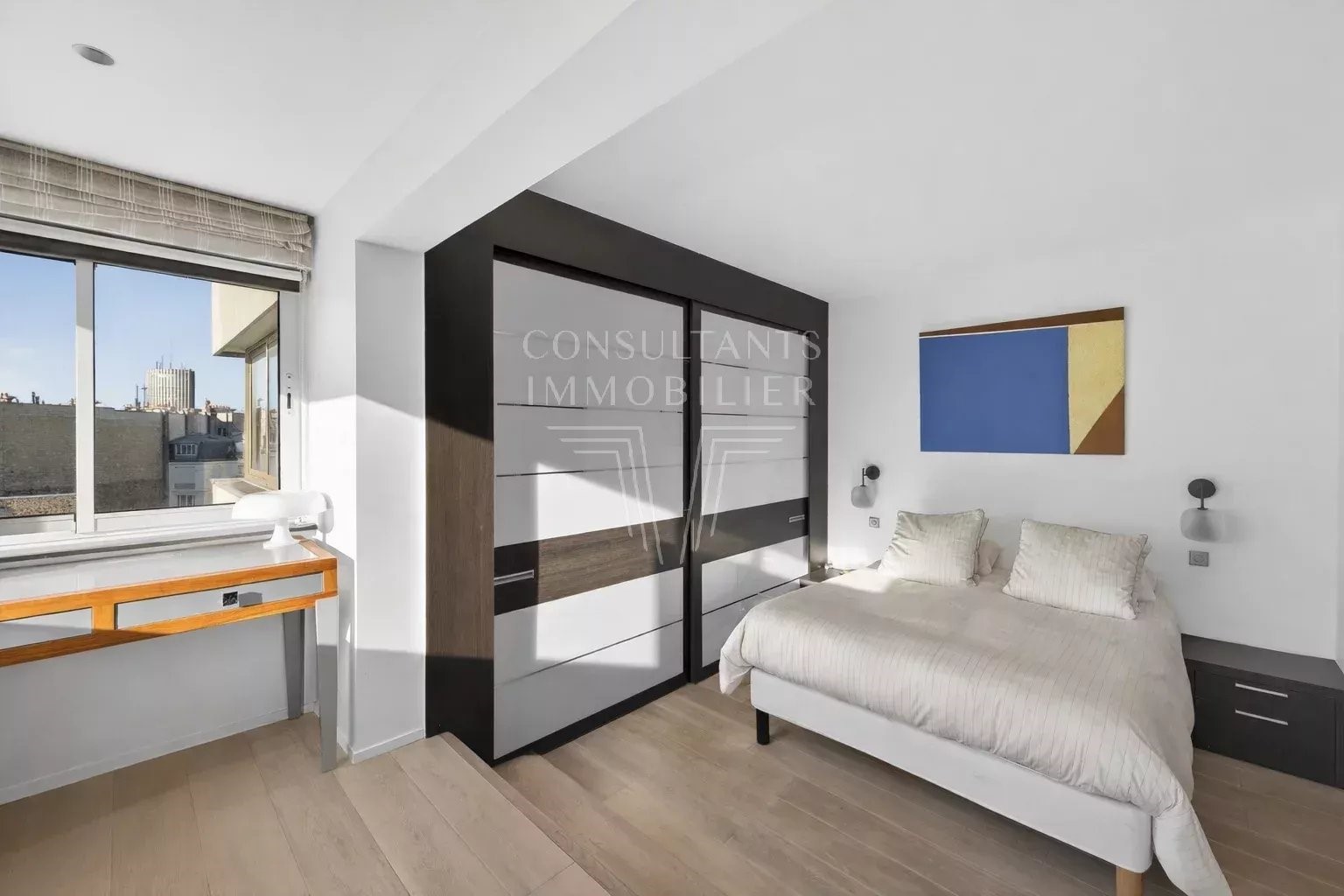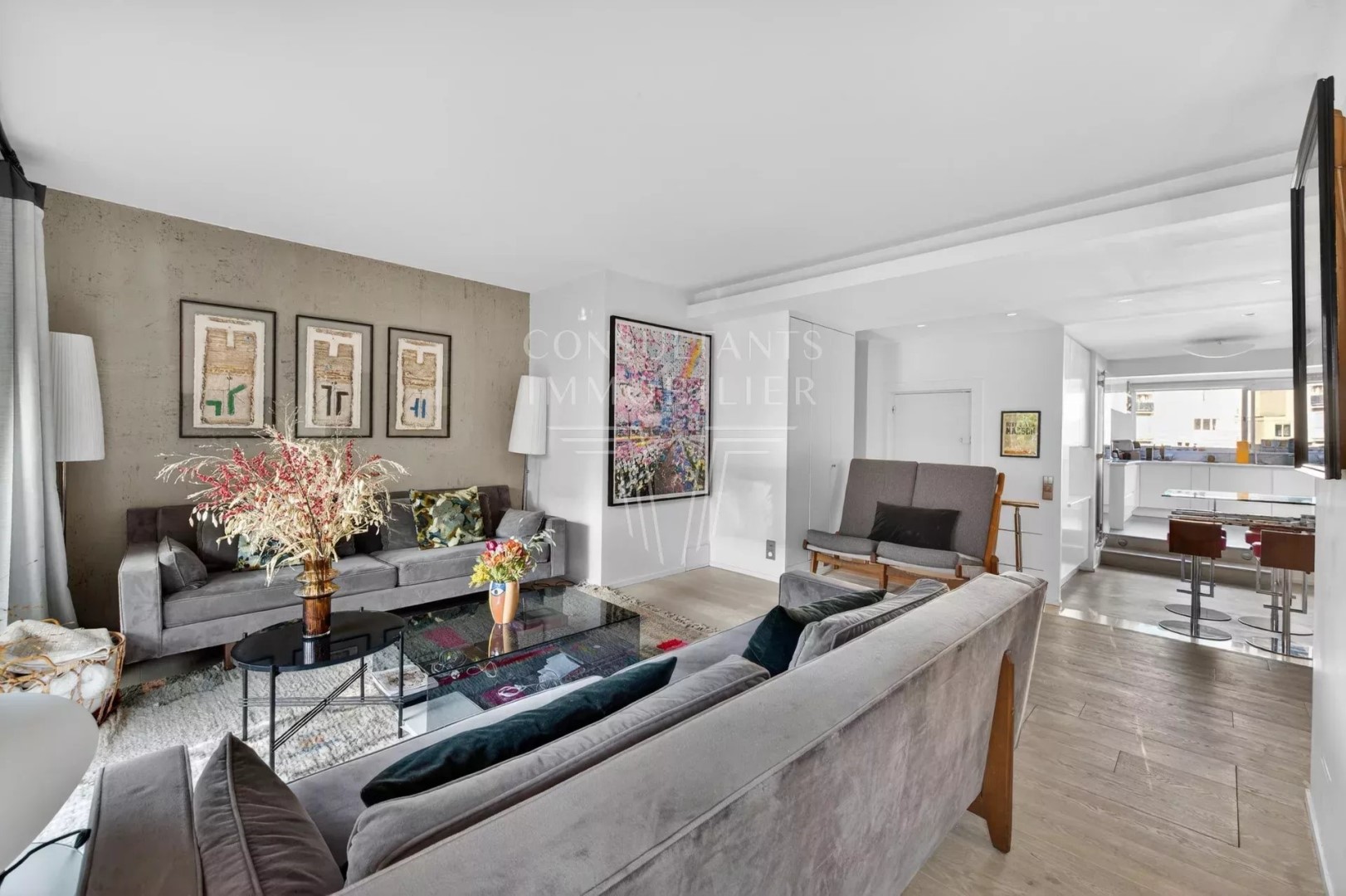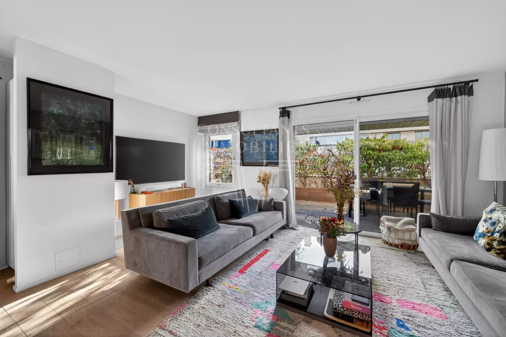 With an open view and west exposure this apartment126 m² (about 1354 ft²), built in 1975, in a building of 8 floors comprises 5 rooms including 3 bedrooms and 1 bathroom. It is provided with a living room 24.79 m² (about 266 ft²), with a None, with a terrace, with a cellar and with a parking lot. It's located on the 8th floor with a lift. Heating : Collective gaz. Others : intercom, digicode, guard, cable television. Fees : 4.184.