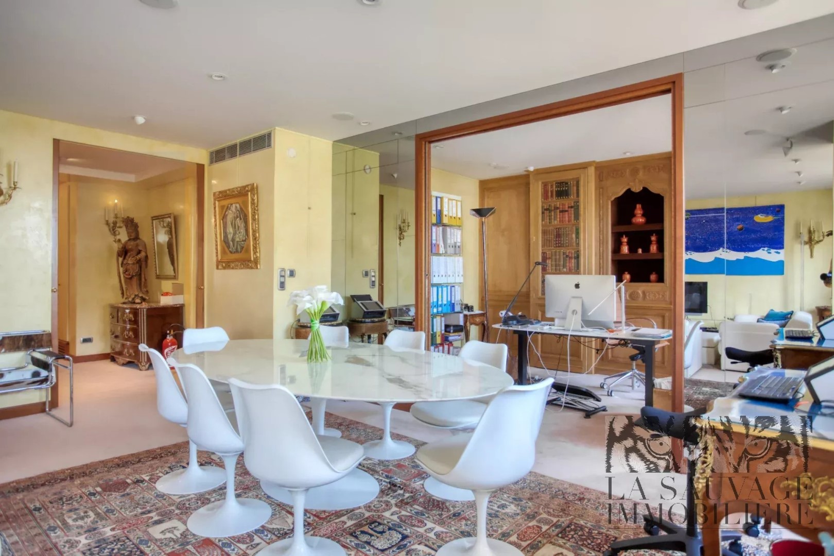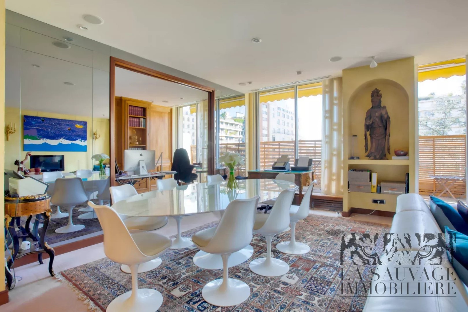 Ideally located in the heart of the highly sought-after 16th arrondissement, in the immediate vicinity of the Bois de Boulogne, this 125.73 sqm apartment (Carrez law) is located on the fifth floor of a luxury building. It opens onto a vast double living room bathed in light, extended by an office space of 13.63 m 2, offering a living environment that is both friendly and refined. This space can easily be converted into a second bedroom, as needed. The American kitchen, perfectly integrated, opens harmoniously on the reception, highlighting the generosity of the volumes. The whole is extended by two continuous balconies of 9.37 m2 and 3.50 m 2, offering pleasant outdoor spaces and a beautiful opening on the environment. The sleeping area includes a master suite with bathroom, dressing room and separate toilet, complemented by an independent shower room. Numerous storage spaces, a storage room as well as a laundry room come to perfect the comfort of this property. Within a quiet and residential environment, close to green spaces and emblematic addresses of the 16th arrondissement, this apartment combines with elegance volume, brightness and quality of life. Information on the risks to which this property is exposed are available on the Géorisques site: www.georisques.gouv.fr Information and visits 7/7 Agency fees to be borne by the seller.