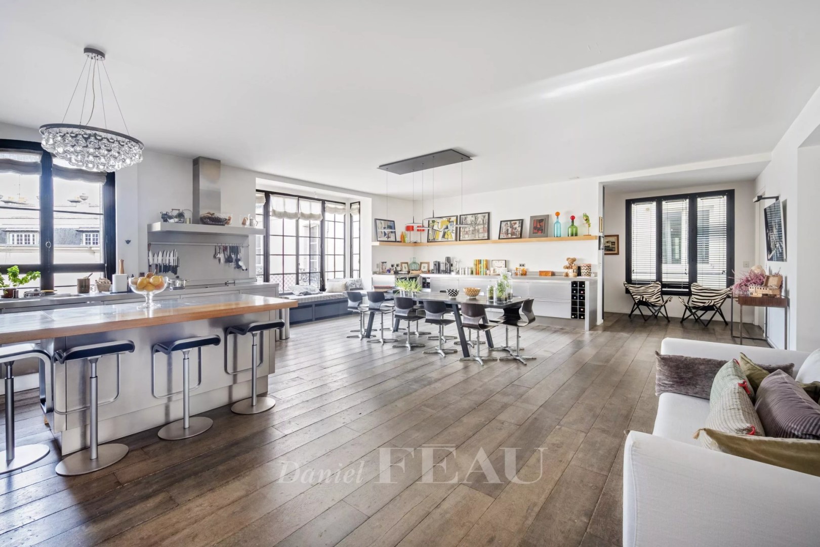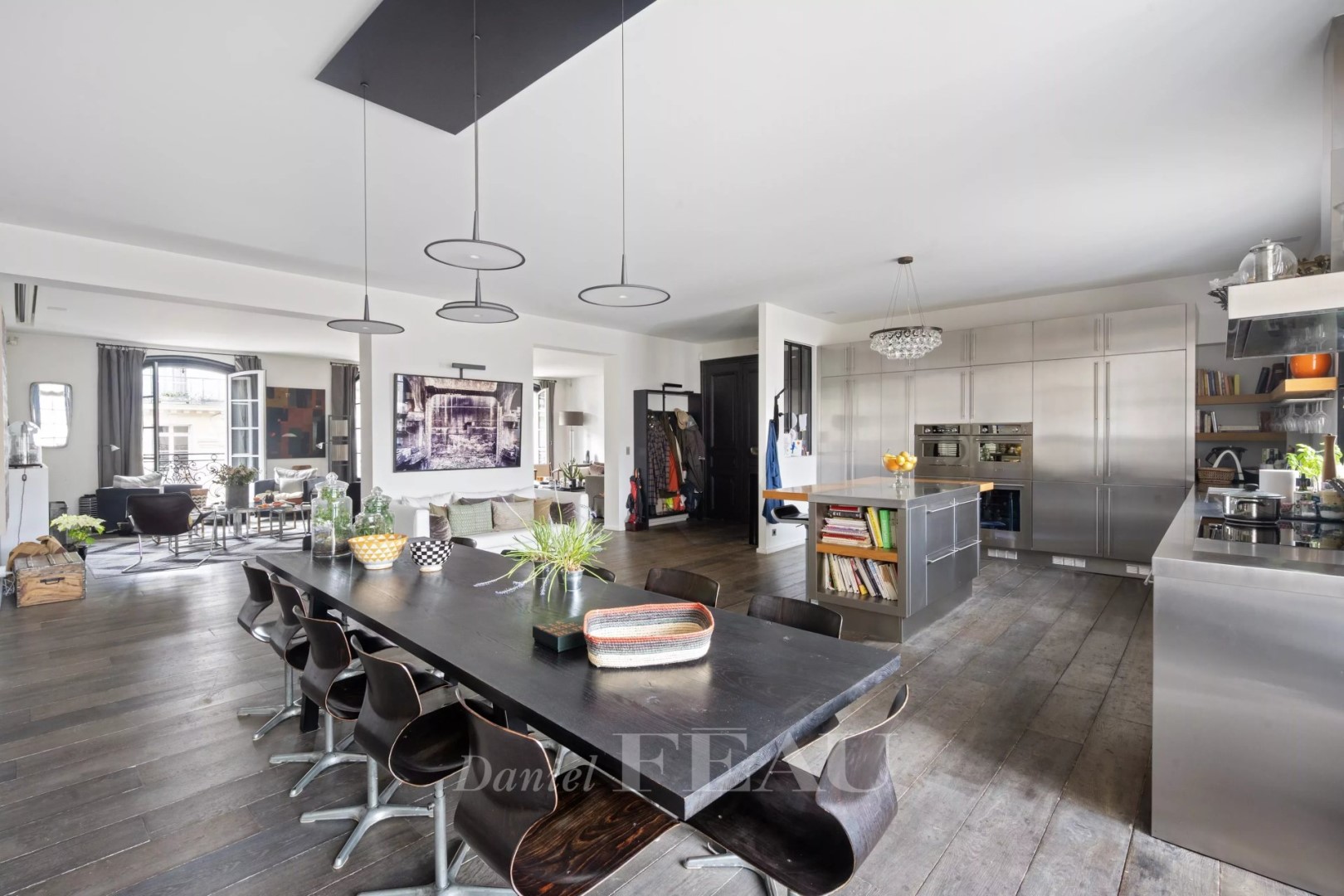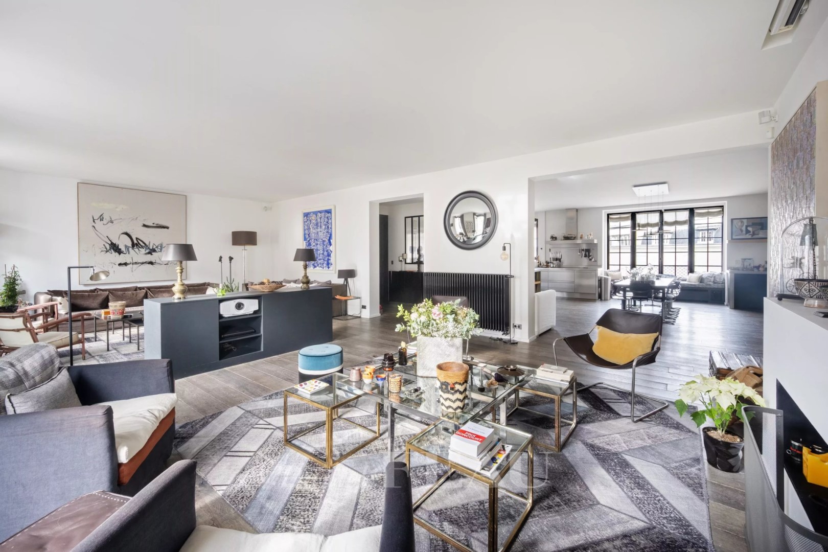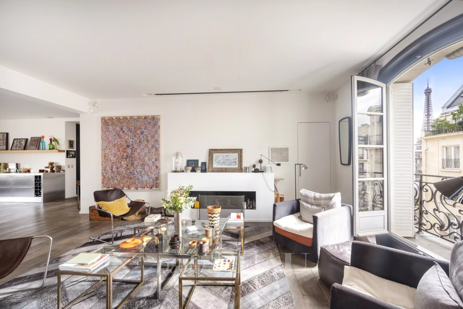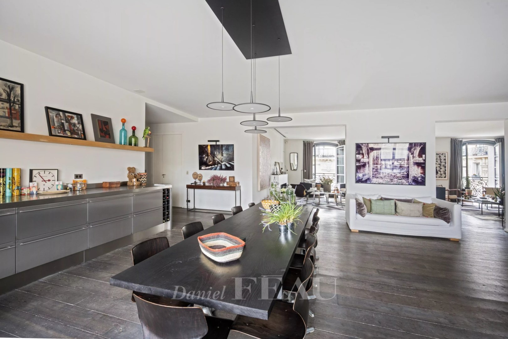This superb 275 sqm apartment benefiting from an excellent floor plan is on the 4th floor of a luxurious early 20th century building with a caretaker located a stone’s throw from Trocadéro. Renovated throughout in a tasteful contemporary style, it includes a bright dual-aspect living/reception room opening onto a continuous balcony commanding a view of the Eiffel Tower, a master suite with a bathroom and a dressing room, and three further bedrooms each with a shower room. Ample fitted storage space. Included in the sale are a 17 sqm studio apartment, a maid’s bedroom, two cellars and a courtyard parking space. In a convenient location near the shops, the schools and the transport networks.